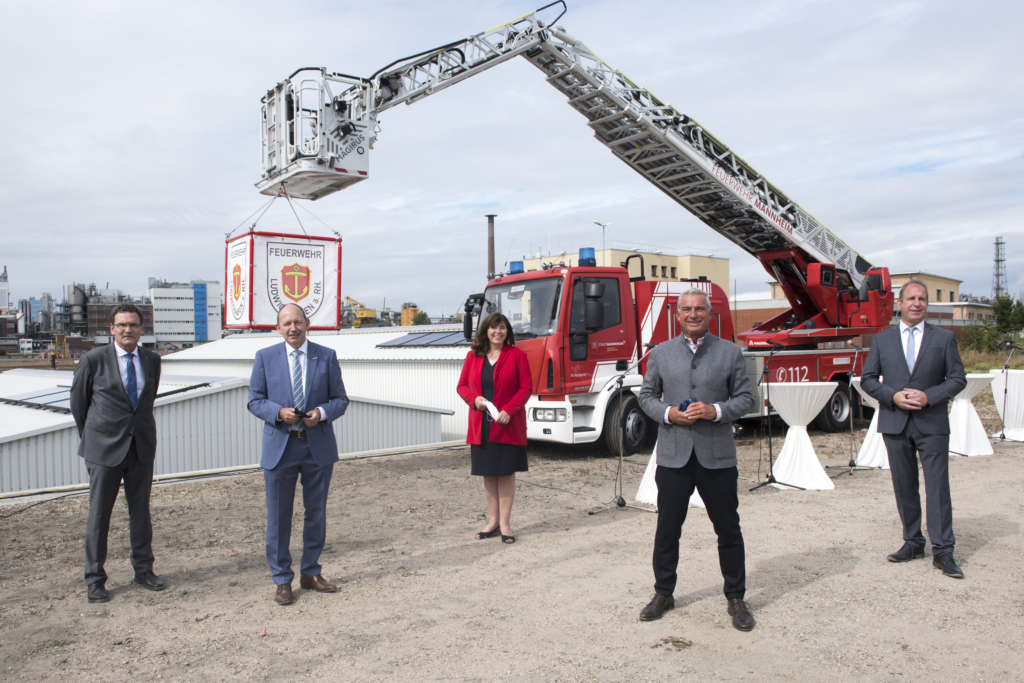 Begingen gemeinsam den bundesweiten Warntag (von links): Christoph Unger (Präsident des BBK), Christian Specht (Erster Bürgermeister und Sicherheitsdezernent der Stadt Mannheim), Jutta Steinruck (Oberbürgermeisterin der Stadt Ludwigshafen), Thomas Strobl (stellvertretender Ministerpräsidenten und Innenminister von Baden-Württemberg) sowie Randolf Stich (Staatssekretär im Innenministerium Rheinland-Pfalz).