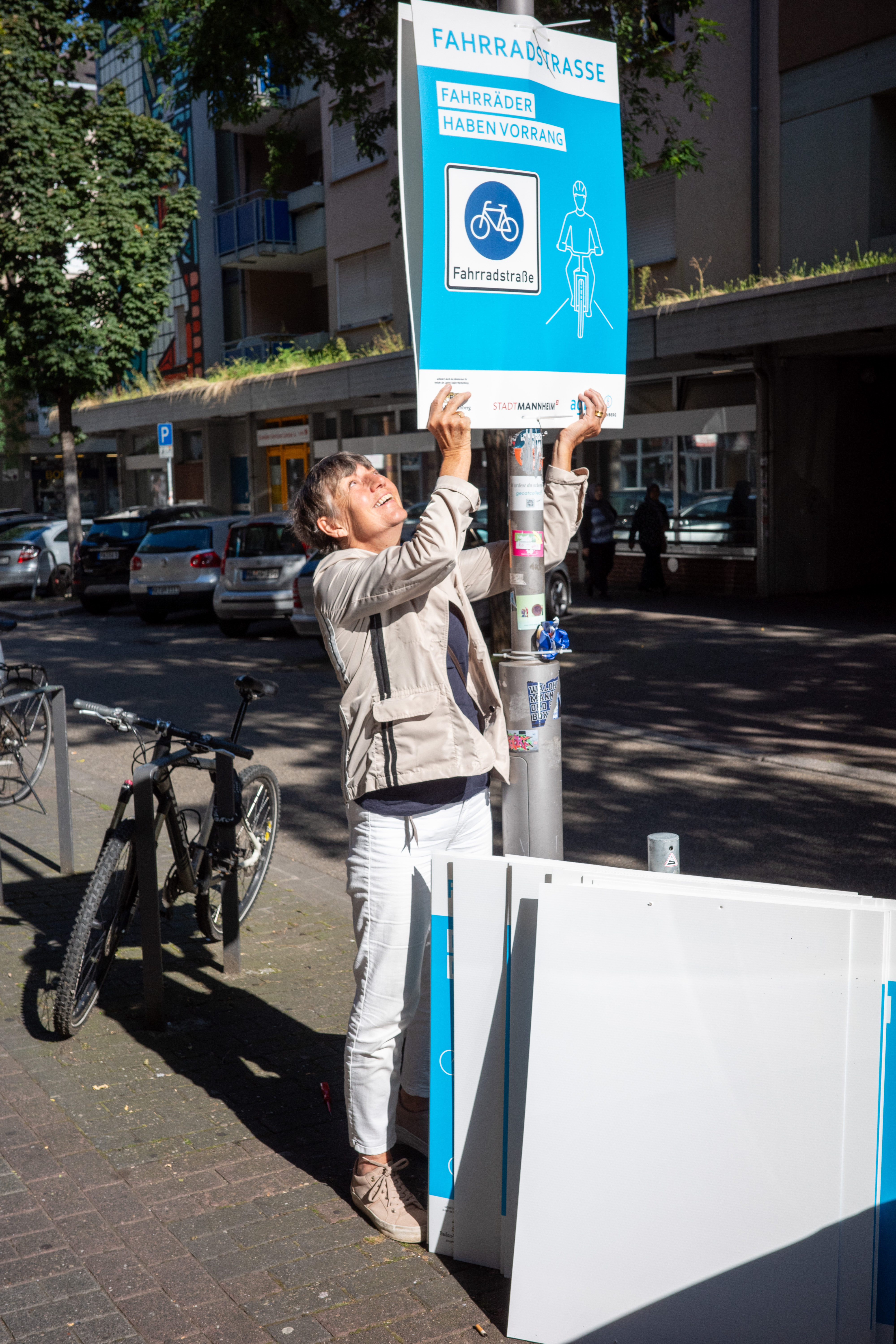 Umweltministerin Thekla Walker bei der symbolischen Scheckübergabe an Bürgermeister Dirk Grunert.