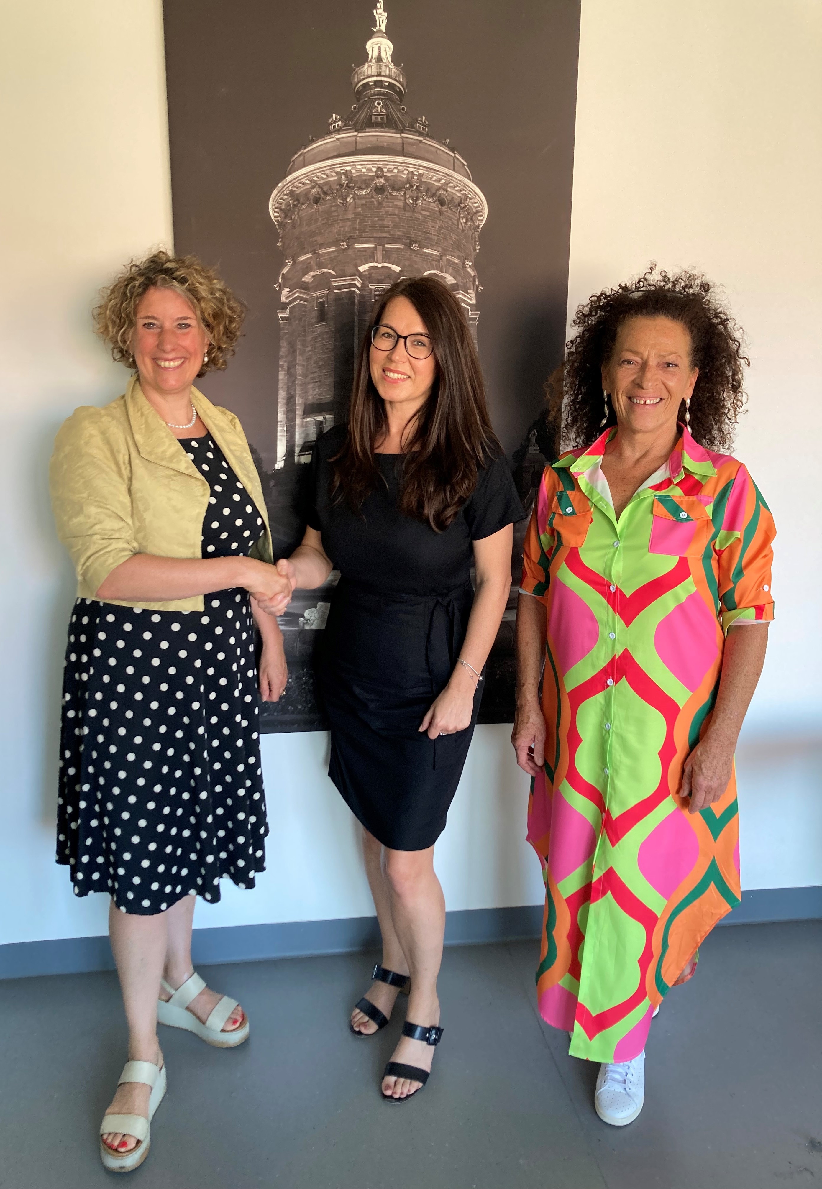 Erste Bürgermeisterin Prof. Dr. Diana Pretzell (li.) und Fachbereichsleiterin Andrea Baroncioni begrüßen Olita Steger, die neue Bezirksbürgerserviceleiterin und verantwortlich für die Bürgerservices in Neckarstadt und Feudenheim.
