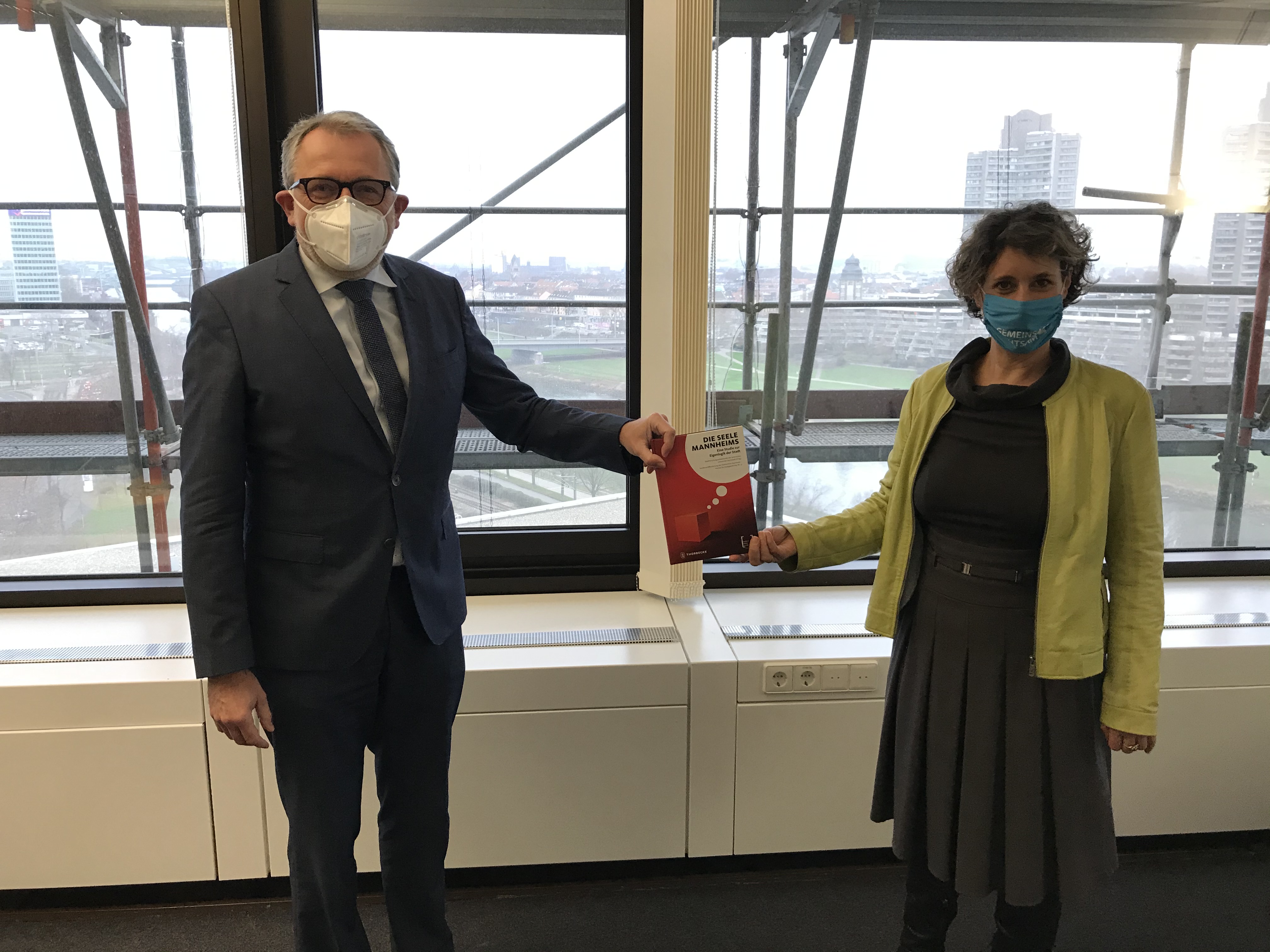 Anstelle der gewohnten Festrede führte Moderatorin Carina Junginger ein Gespräch mit dem Direktor des Zentralinstituts für Seelische Gesundheit, Prof. Dr. Andreas Meyer-Lindenberg zum Thema „Corona und die Psyche. Was macht Corona mit uns Menschen?“