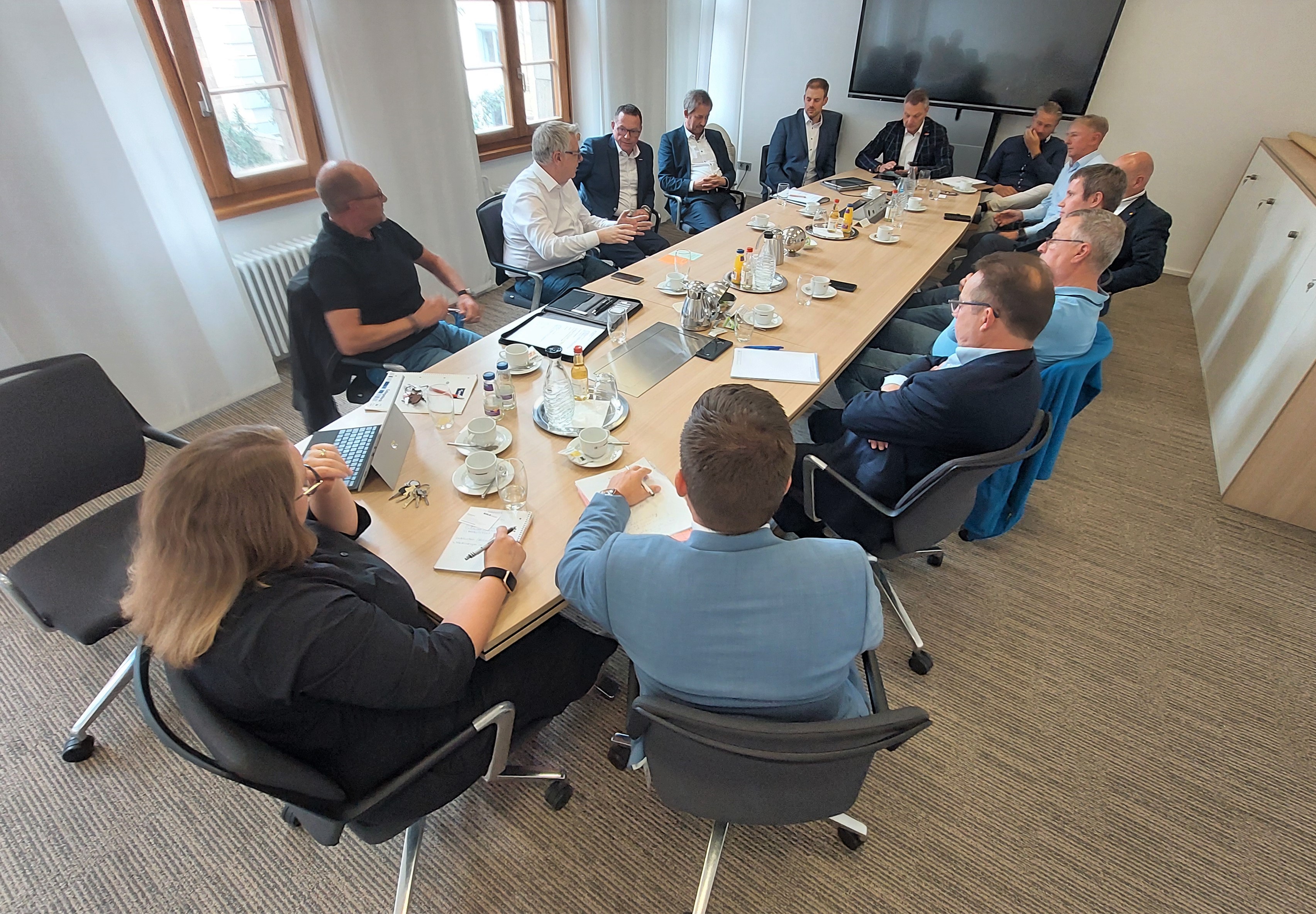 Oberbürgermeister Christian Specht (Mitte), Erste Bürgermeisterin Prof. Dr. Diana Pretzell und Bürgermeister Ralf Eisenhauer zeigen die Route des Radschnellwegs, der Mannheim künftig mit Viernheim verbinden soll