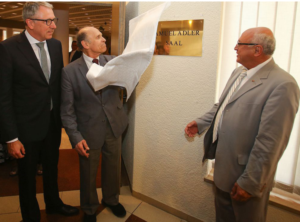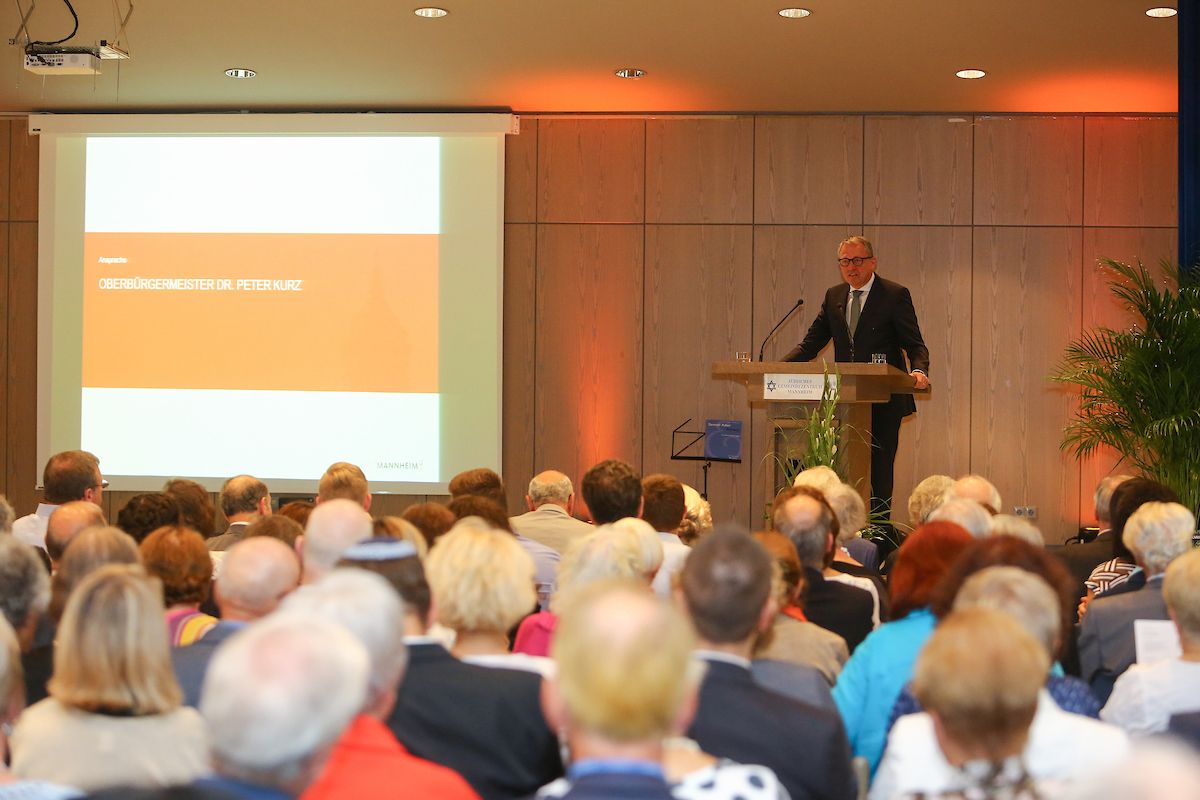 Unser Bild zeigt von links nach rechts: Oberbürgermeister Dr. Peter Kurz, Andreas Bausewein, Oberbürgermeister von Erfurt, Thomas Geisel, Oberbürgermeister von Düsseldorf, Yona Yahav, Oberbürgermeister der Stadt Haifa, Ulrike Hiller, Staatsrätin für Bundes- und Europaangelegenheiten und Entwicklungszusammenarbeit aus Bremen sowie Michael Ebling, Oberbürgermeister der Stadt Mainz.