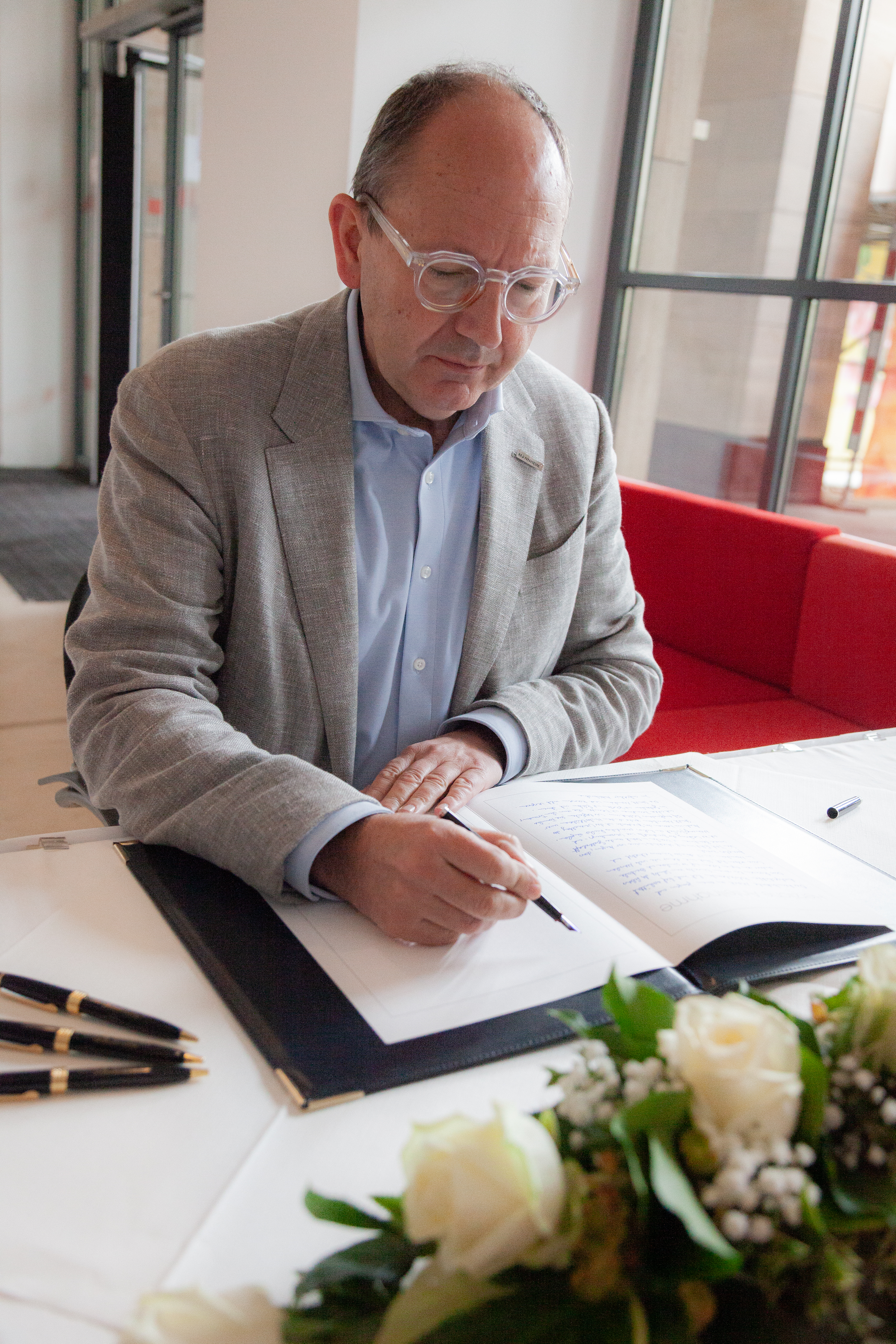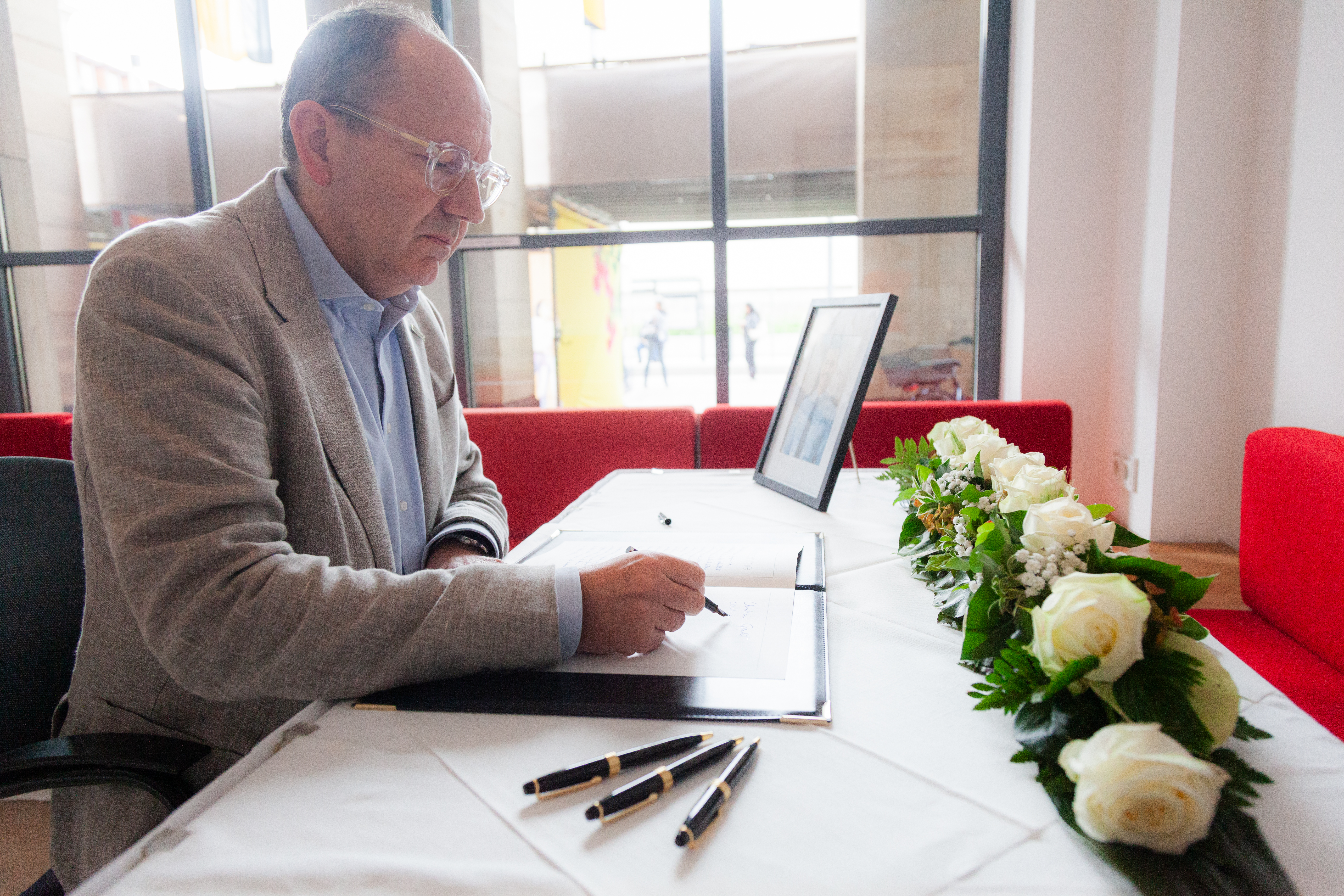 Oberbürgermeister Christian Specht trägt sich in das Kondolenzbuch für den getöteten Polizisten ein (02)