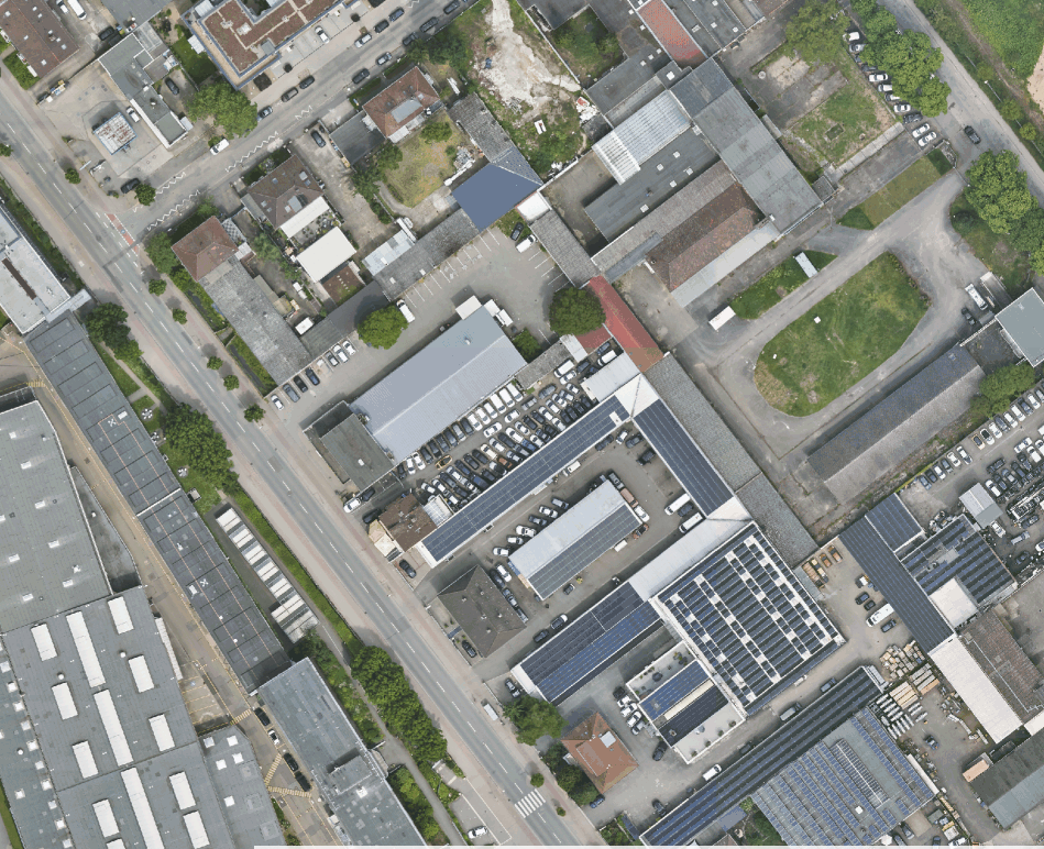 Luftaufnahme der Neustadter Straße um den ehemaligen Supermarkt