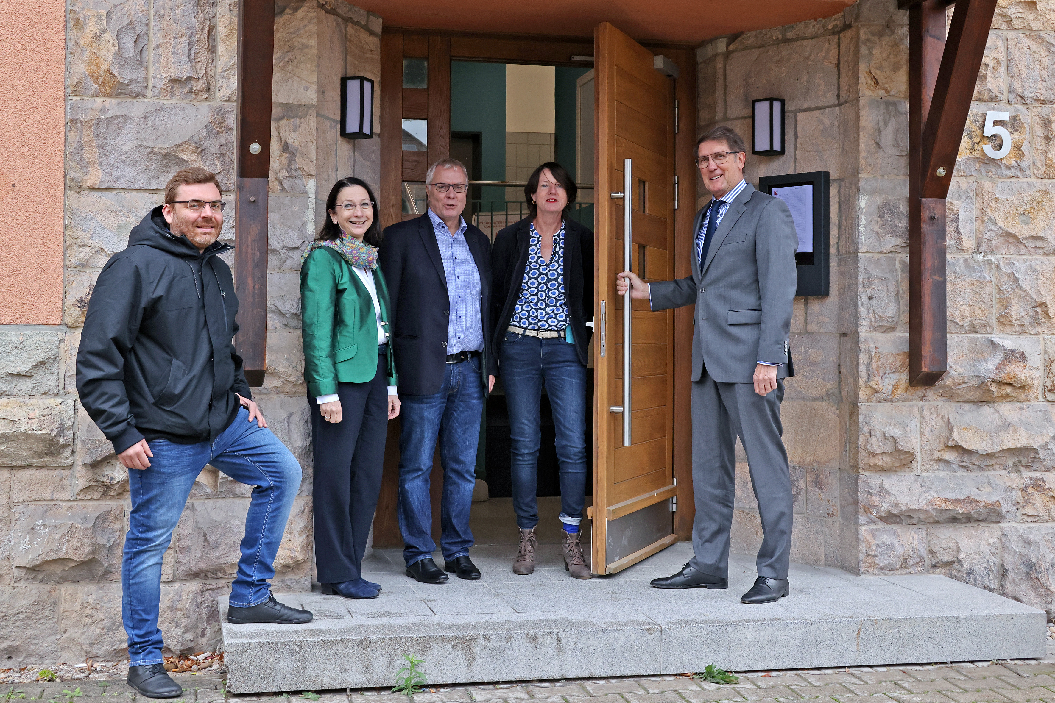 Von links: Sebastian Unser, Projektmitarbeiter Azubihaus Förderband e.V., Christiane Ram Fachbereichsleiterin Wirtschafts- und Strukturförderung, Klaus Sommer, 1. Vorsitzender Förderband e.V., Barbara Stanger, Leiterin Förderband e.V; Michael Grötsch, Wirtschaftsbürgermeister Stadt Mannheim