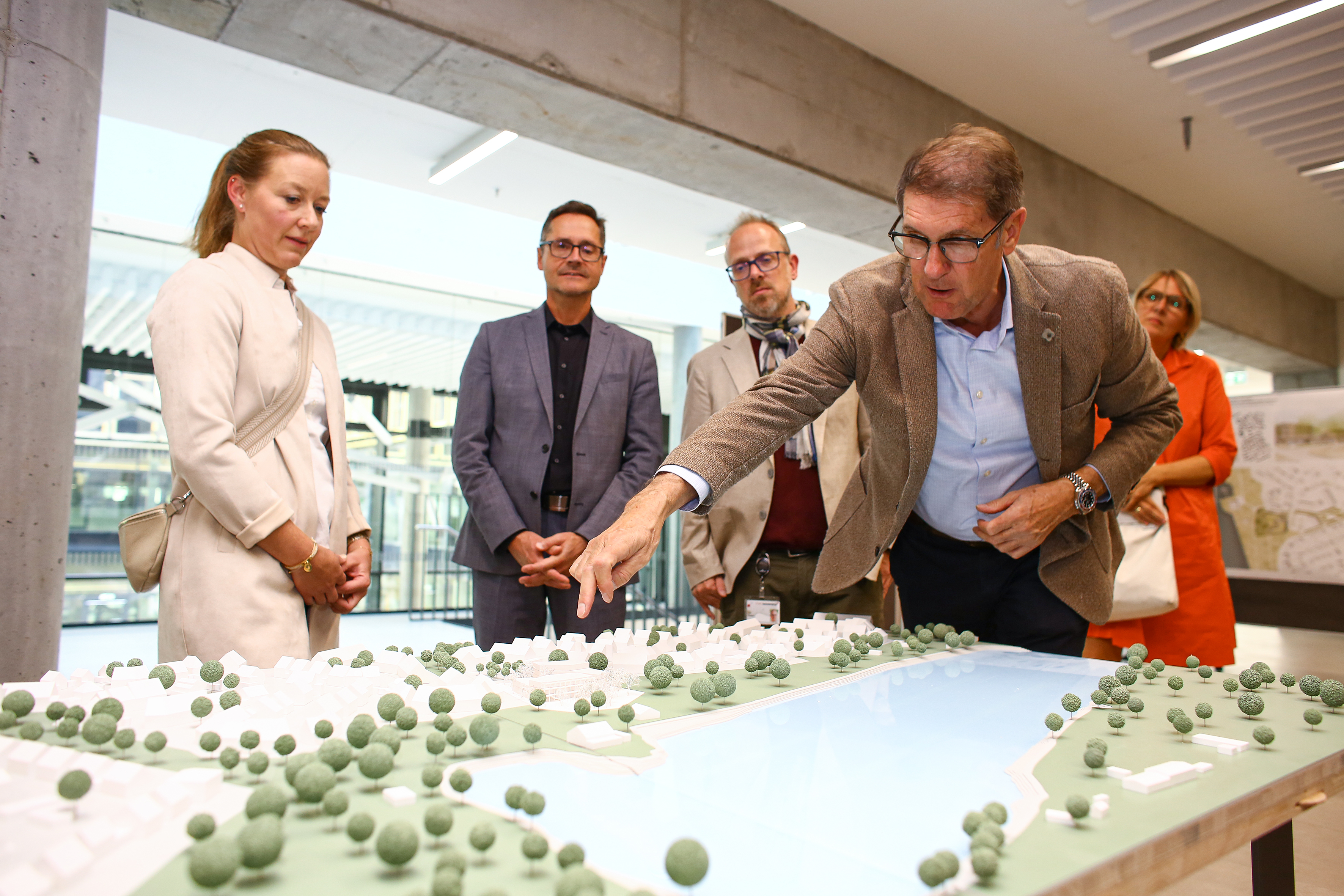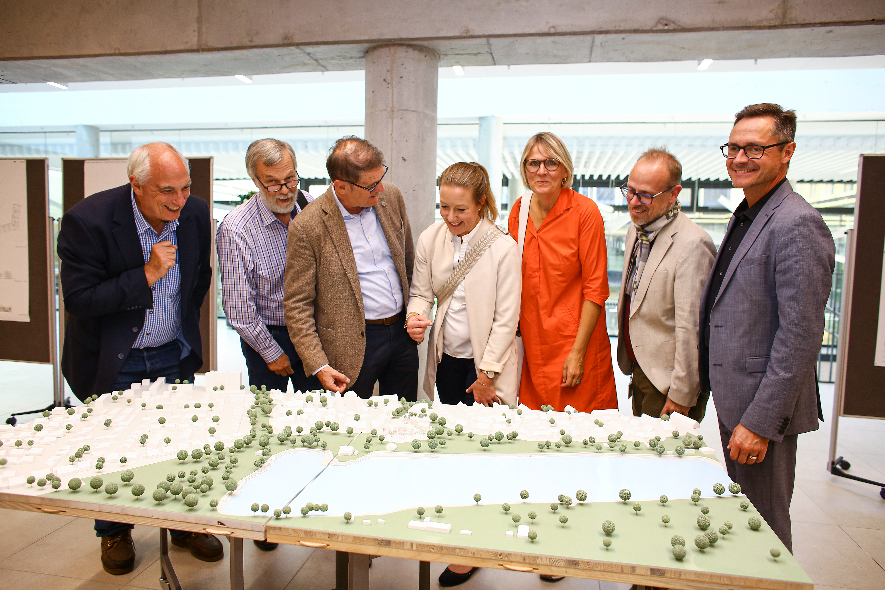 Begutachten des Modells von ARP Architektenpartnerschaft Stuttgart (1. Preis)