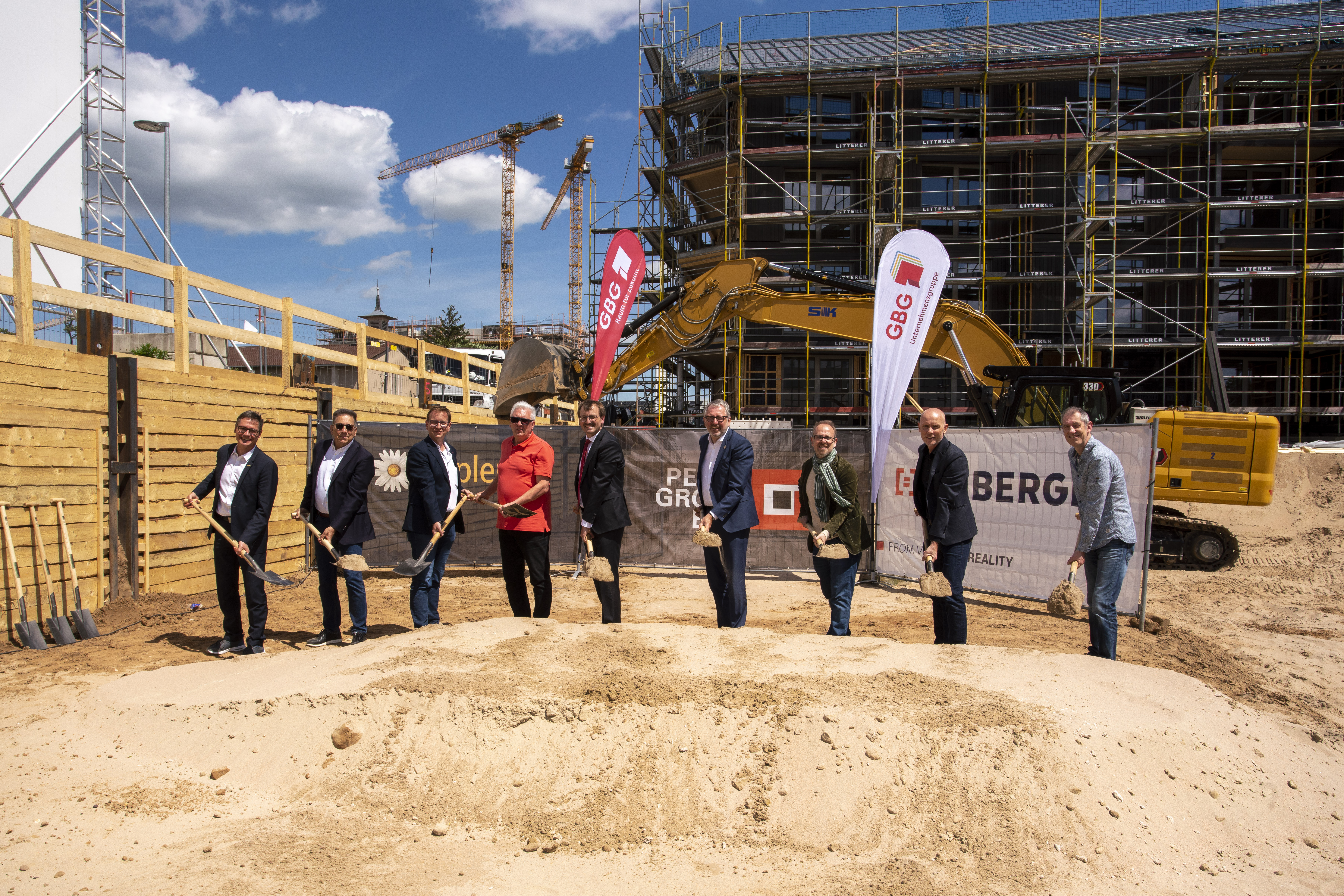 Unser Bild zeigt v.l.: Bürgermeister Ralf Eisenhauer, Dr. Ulrich Lehnert, Holger Schmid, Reinhold Götz, GBG-Geschäftsführer Karl-Heinz Frings, Oberbürgermeister Dr. Peter Kurz, Bürgermeister Dirk Grunert, MWSP-Geschäftsführer Achim Judt, Frank Held.