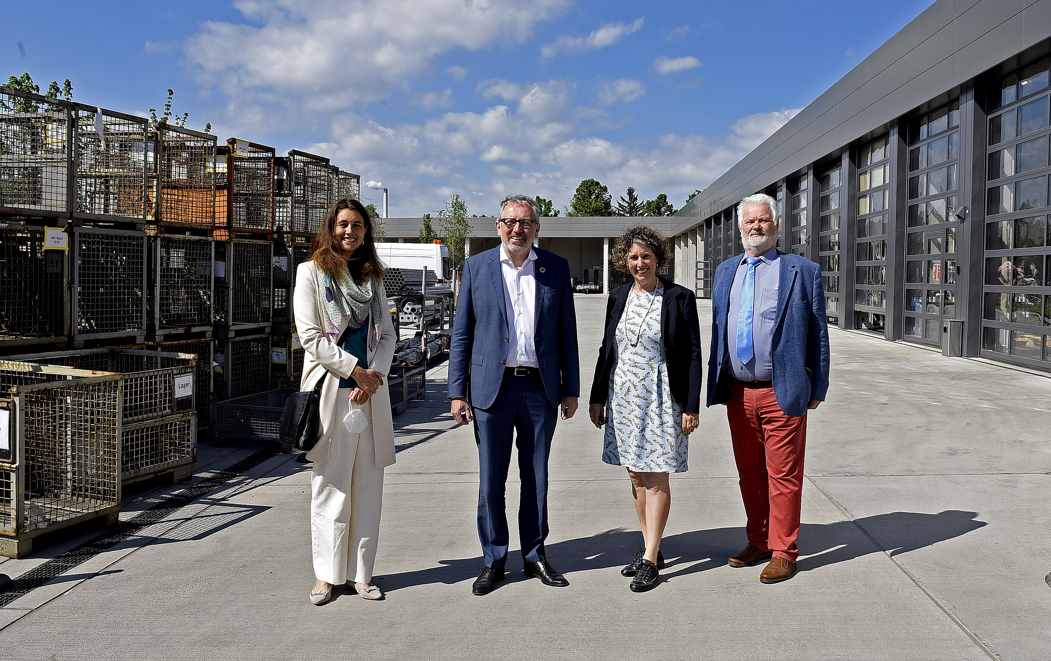 Alexandra Kriegel, Eigenbetriebsleiterin Stadtraumservice, Oberbürgermeister Dr. Peter Kurz, Bürgermeisterin Prof. Dr. Diana Pretzell und Hans-Georg Hering, Geschäftsführer der ABG Abfallbeseitigungsgesellschaft mbH freuen sich über den neuen Betriebshof Morchhof