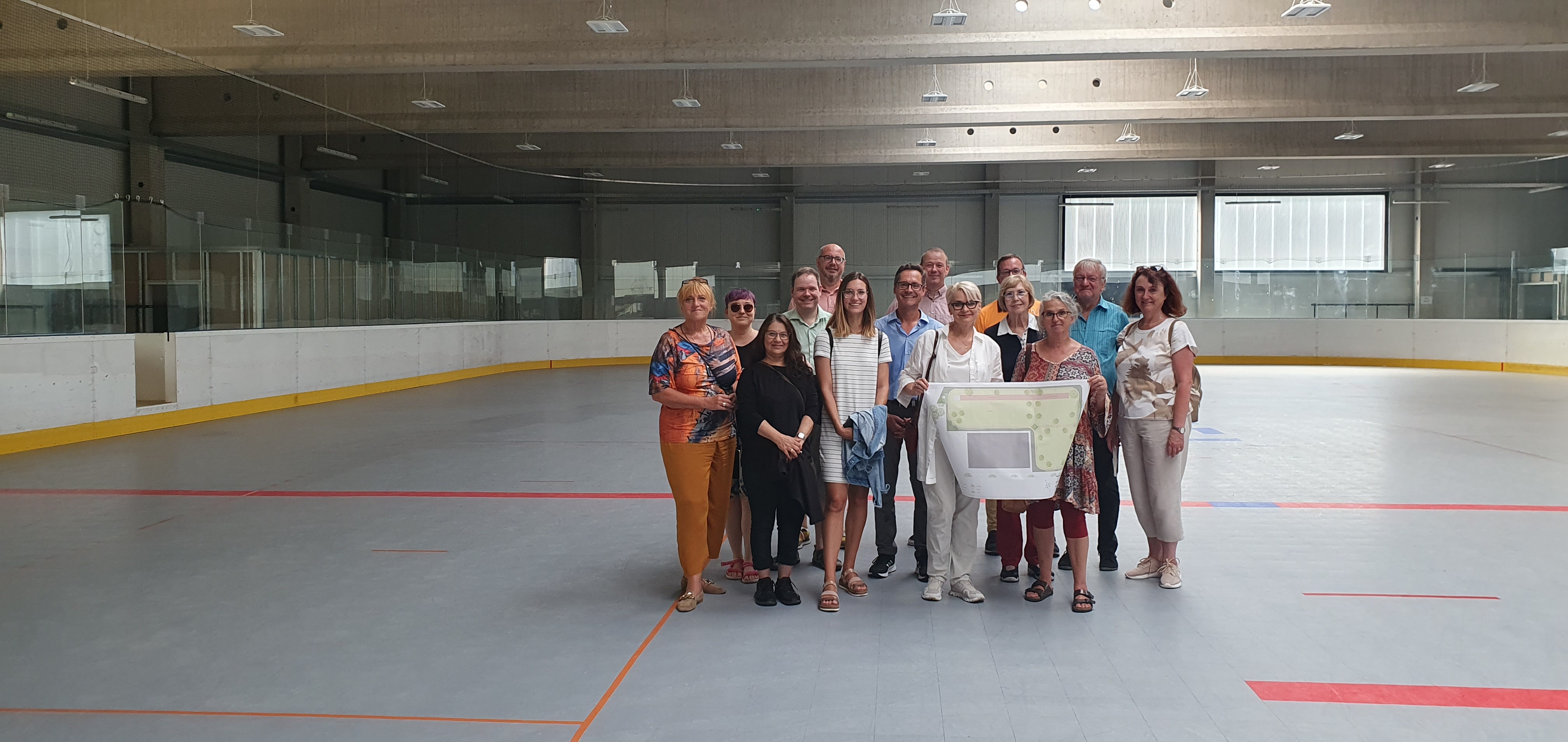 Mitglieder des Ausschuss für Sport und Freizeit machten sich vor Ort ein Bild von der neuen Inline-Halle es ISC Mannheim.