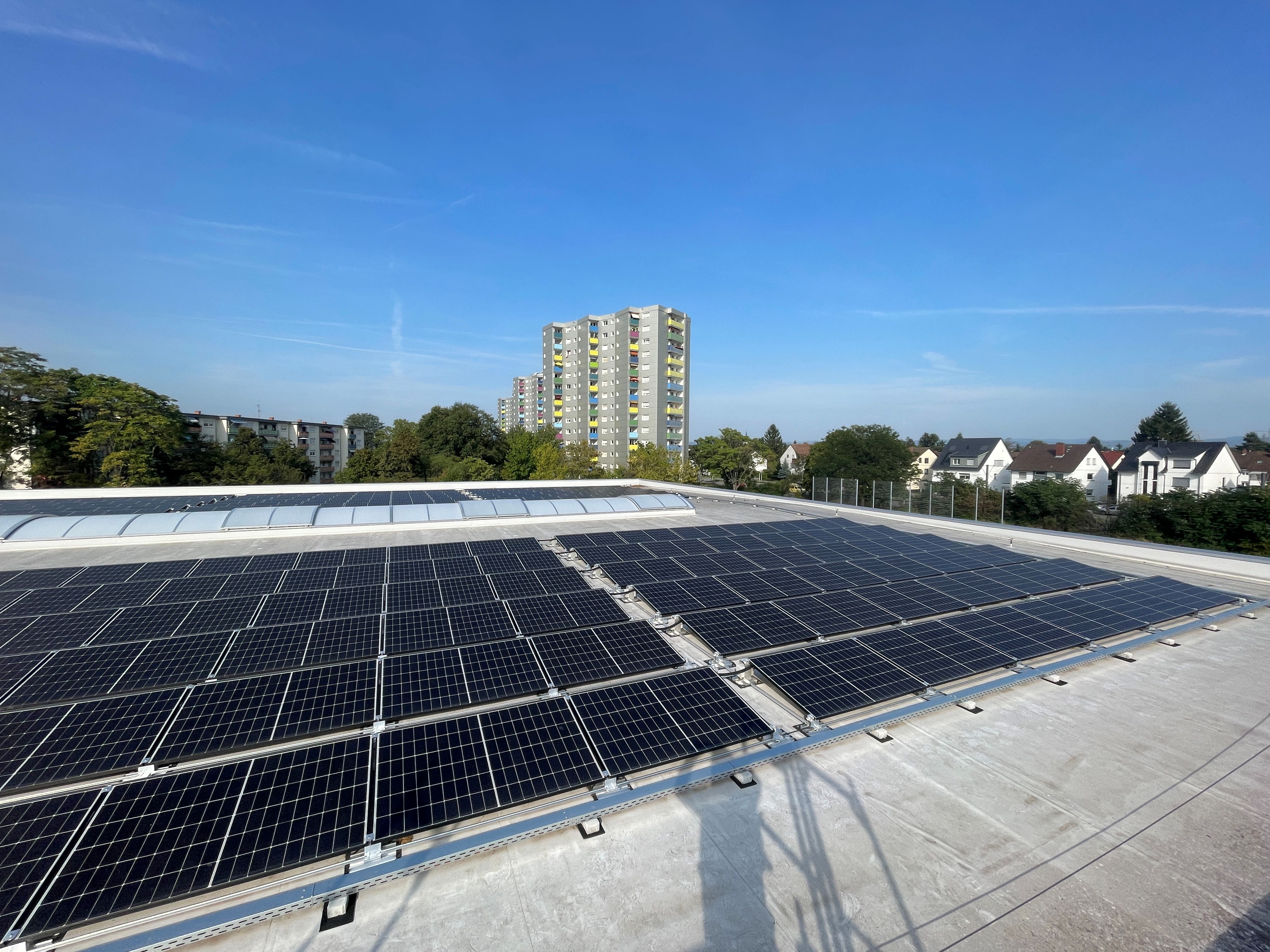 Auf dem Dach der Inline-Halle ist eine große PV-Anlage installiert.