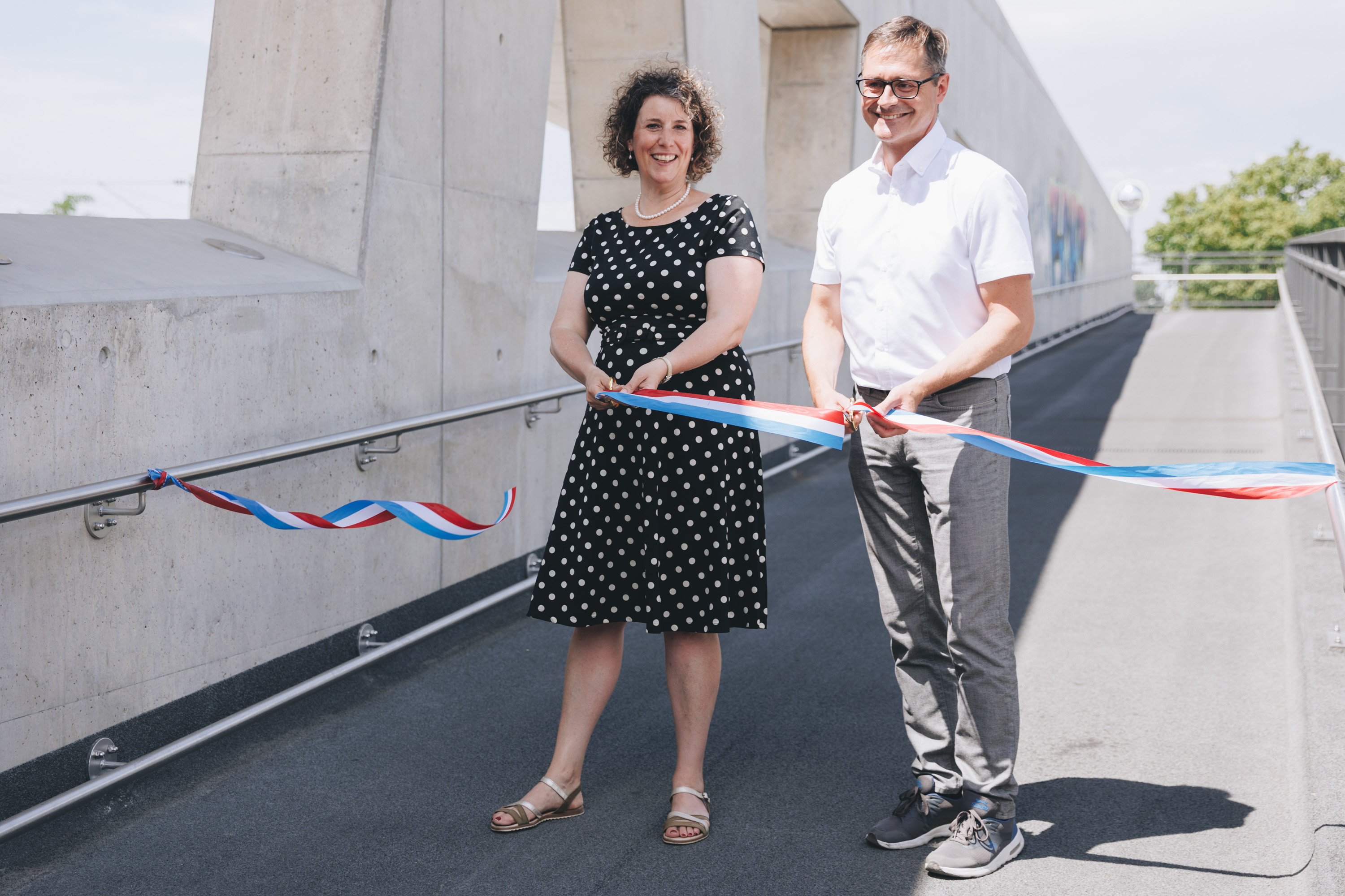 Bürgermeisterin Prof. Dr. Diana Pretzell und Bürgermeister Ralf Eisenhauer freuen sich über die Einweihung der neuen Boverirampe