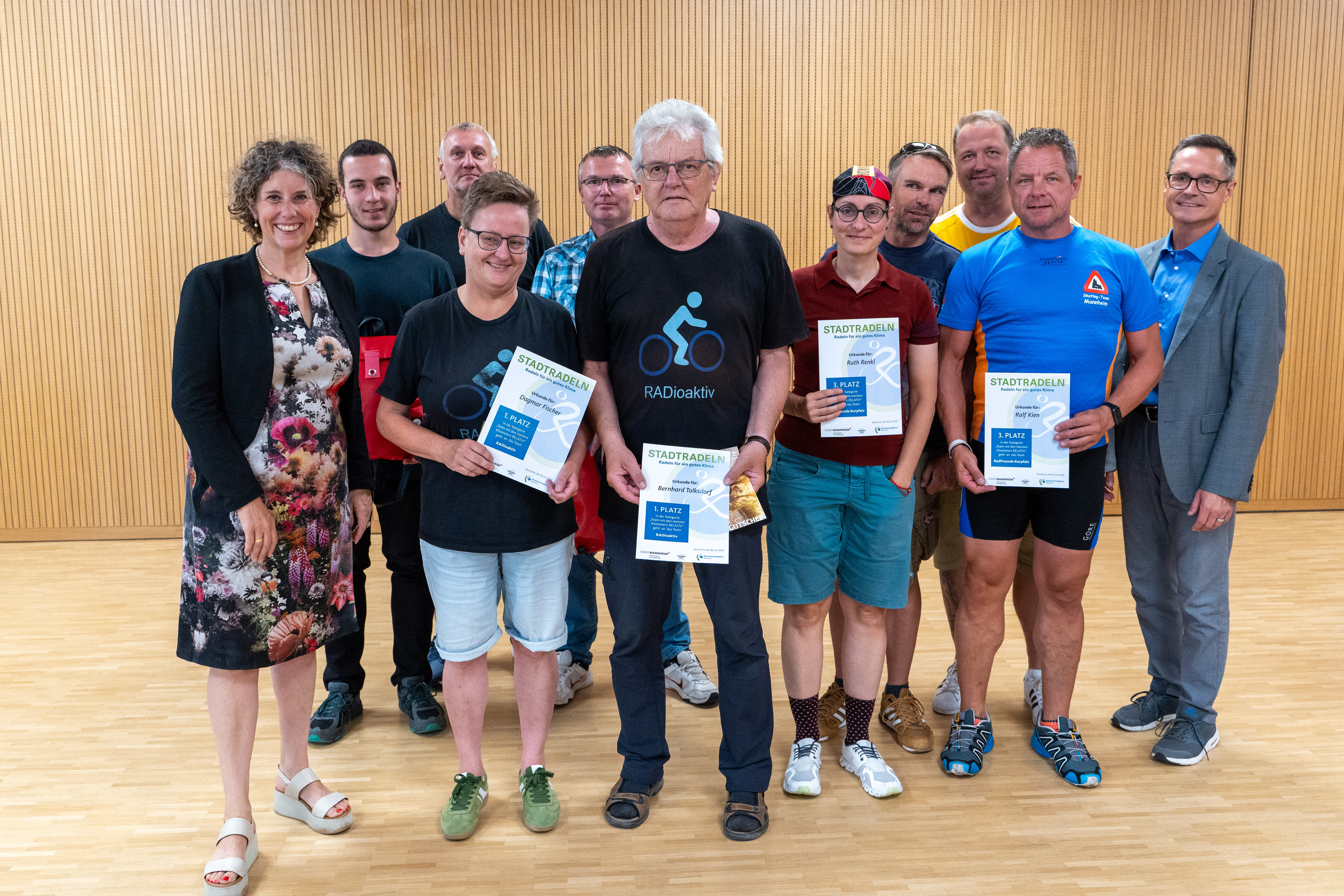 Gruppenbild der Gewinner der Kategorie Gesamtkilometer absolut bei STADTRADELN 2023.