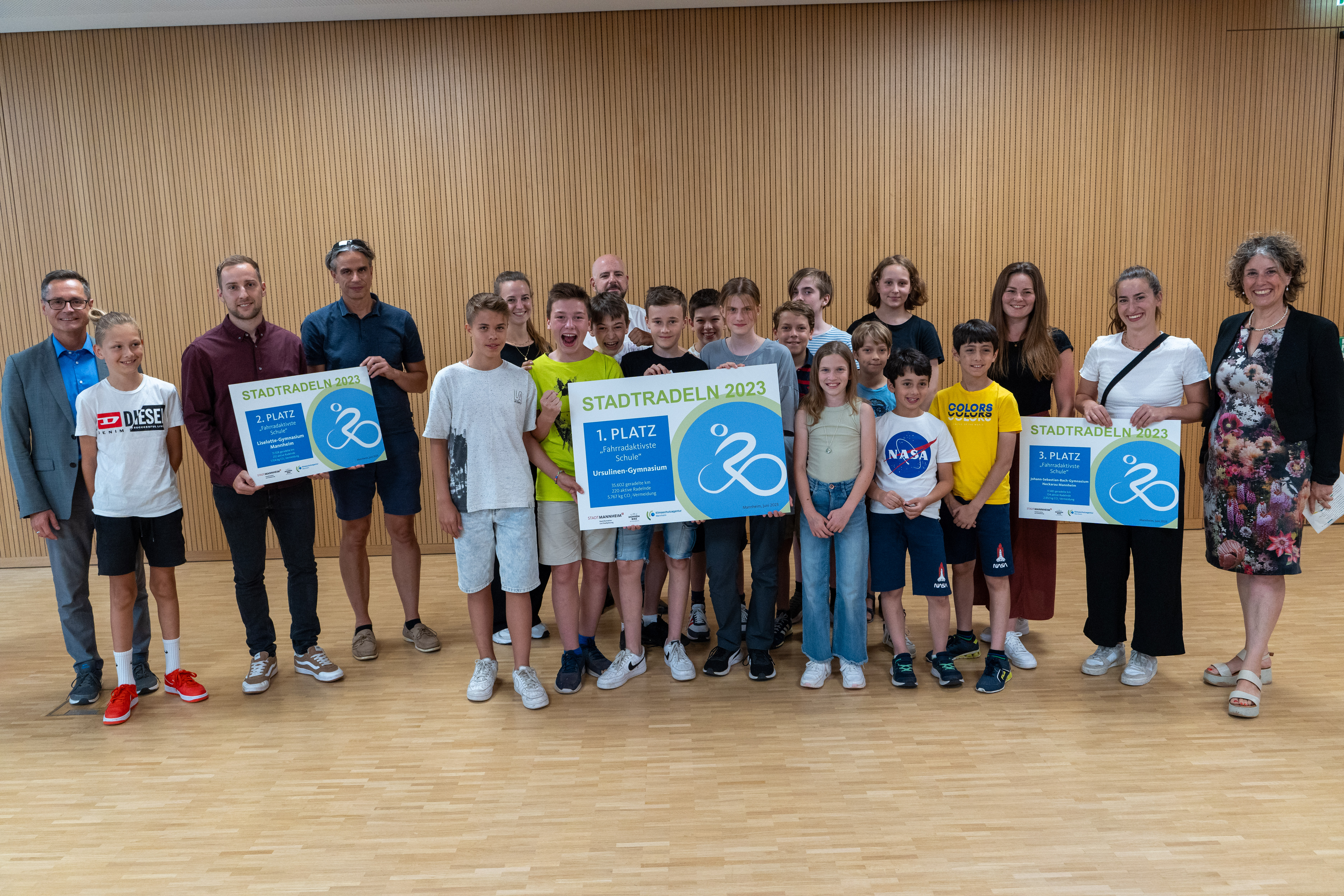 Gruppenbild der Gewinner des Schulwettbewerbs bei STADTRADELN 2023.