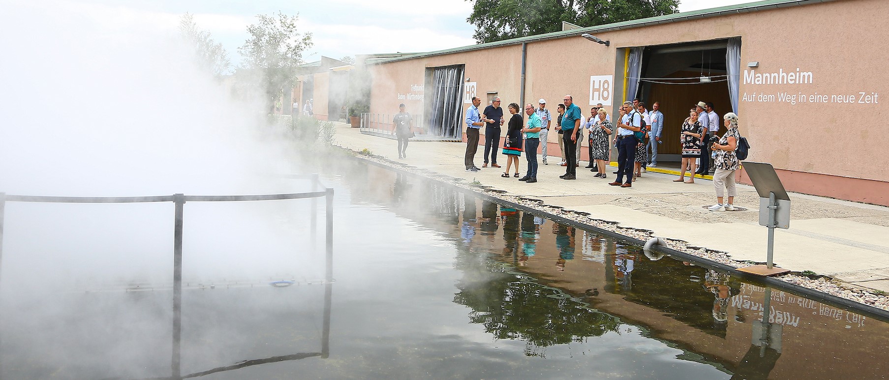 Unser Bild zeigt Oberbrügermeister Dr. Peter Kurz, der die Gruppe am Stand der Stadt Mannheim begrüßt