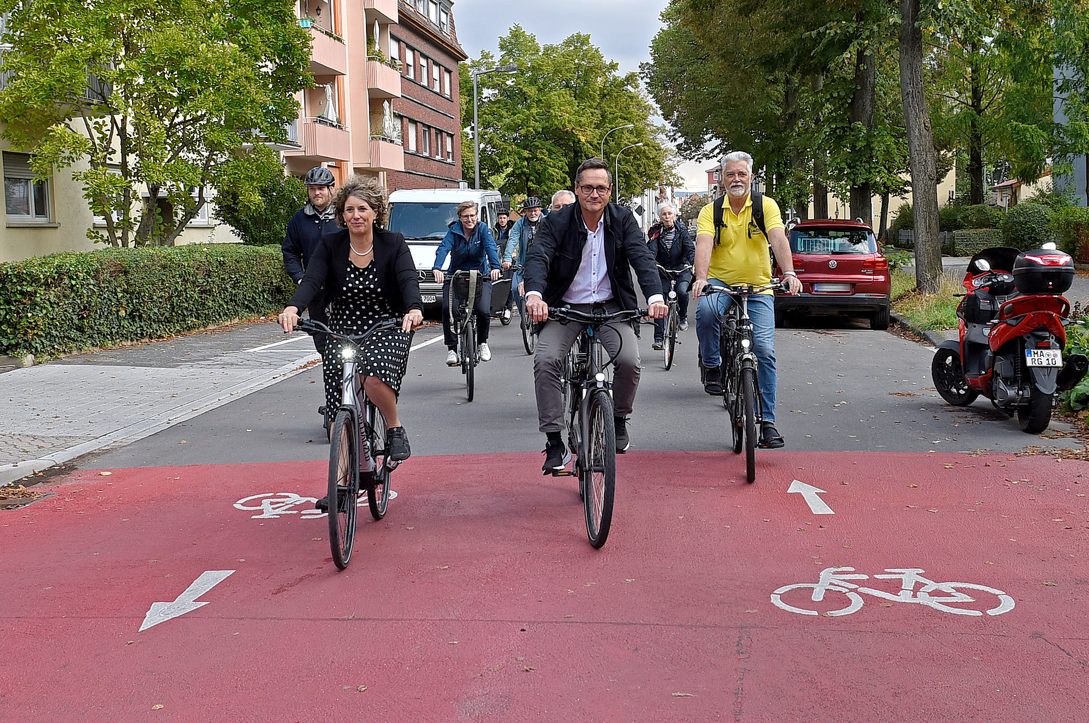 Bürgermeisterin Prof. Dr. Diana Pretzell (links) und Bürgermeister Ralf Eisenhauer (2. v. l.) befuhren gemeinsam die neue Luisenstraße mit dem Rad.