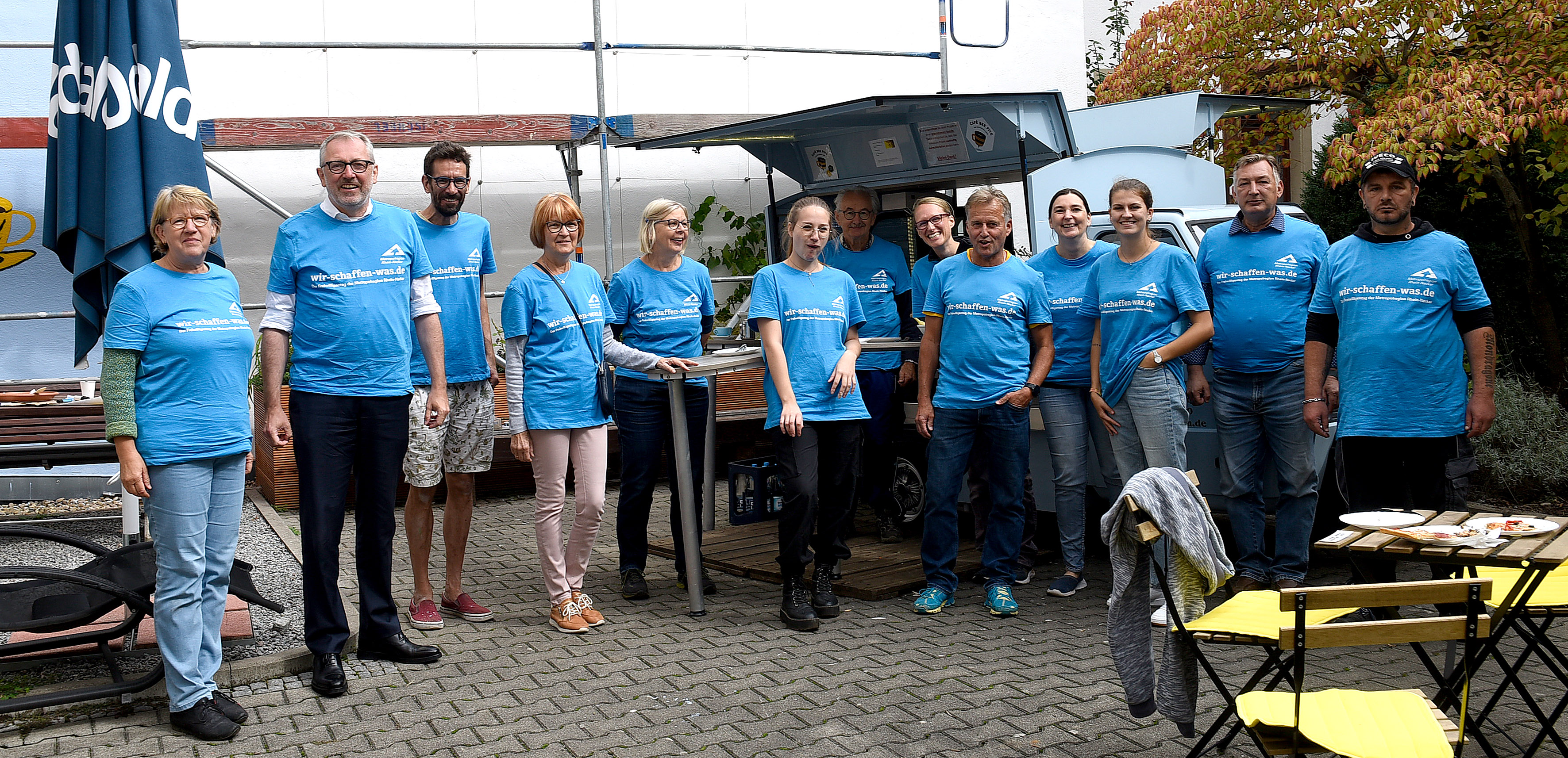 Unser Bild zeigt Oberbürgermeister Dr. Peter Kurz beim Sozialdienst katholischer Frauen, die im Quadrat B 5 das Inklusions-Café „Bee Five“ betreiben und am Freiwilligentag gemeinsam mit vielen Hel-fer*innen den gemütlichen Innenhof weiter aufgewertet haben.