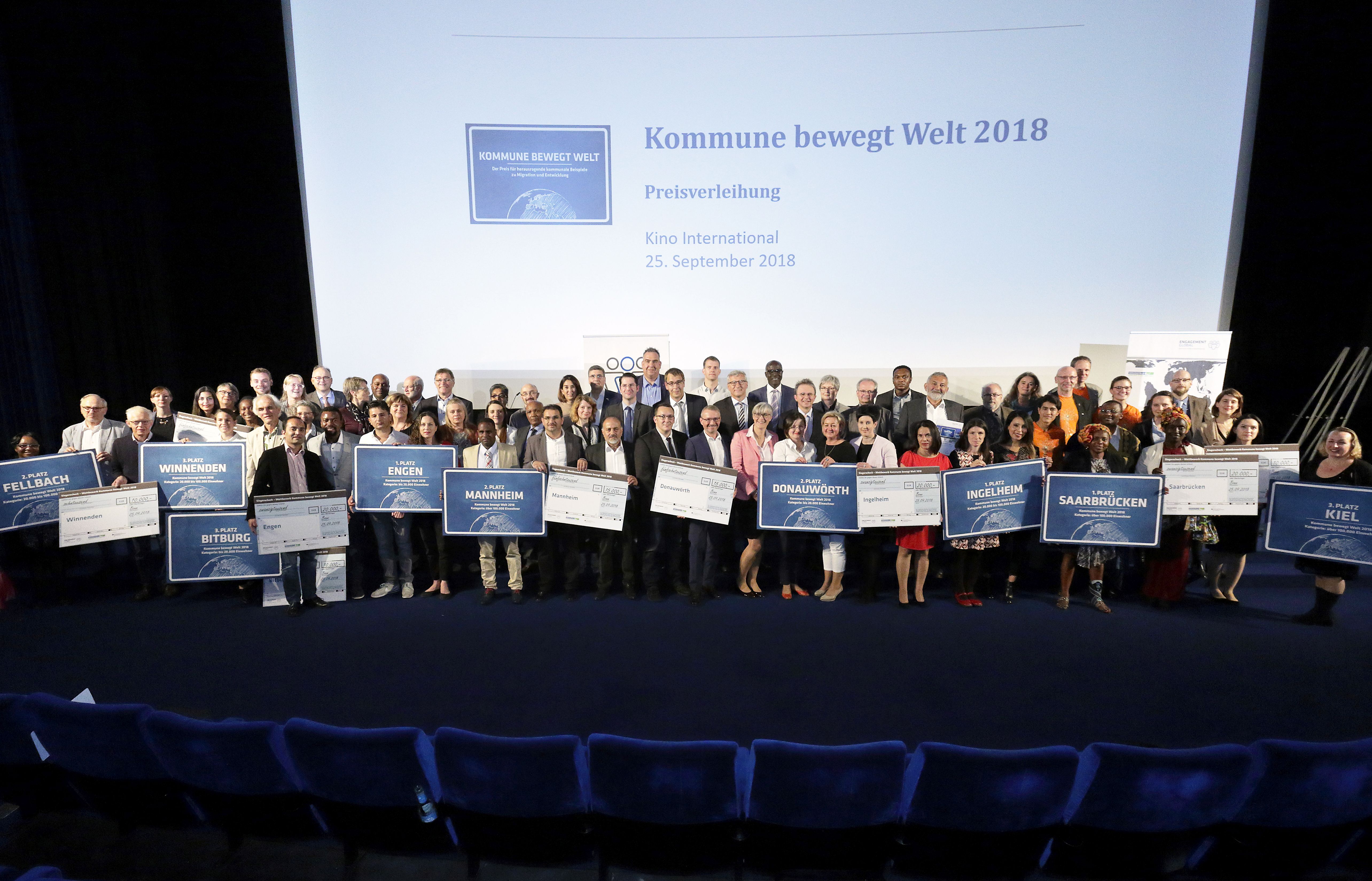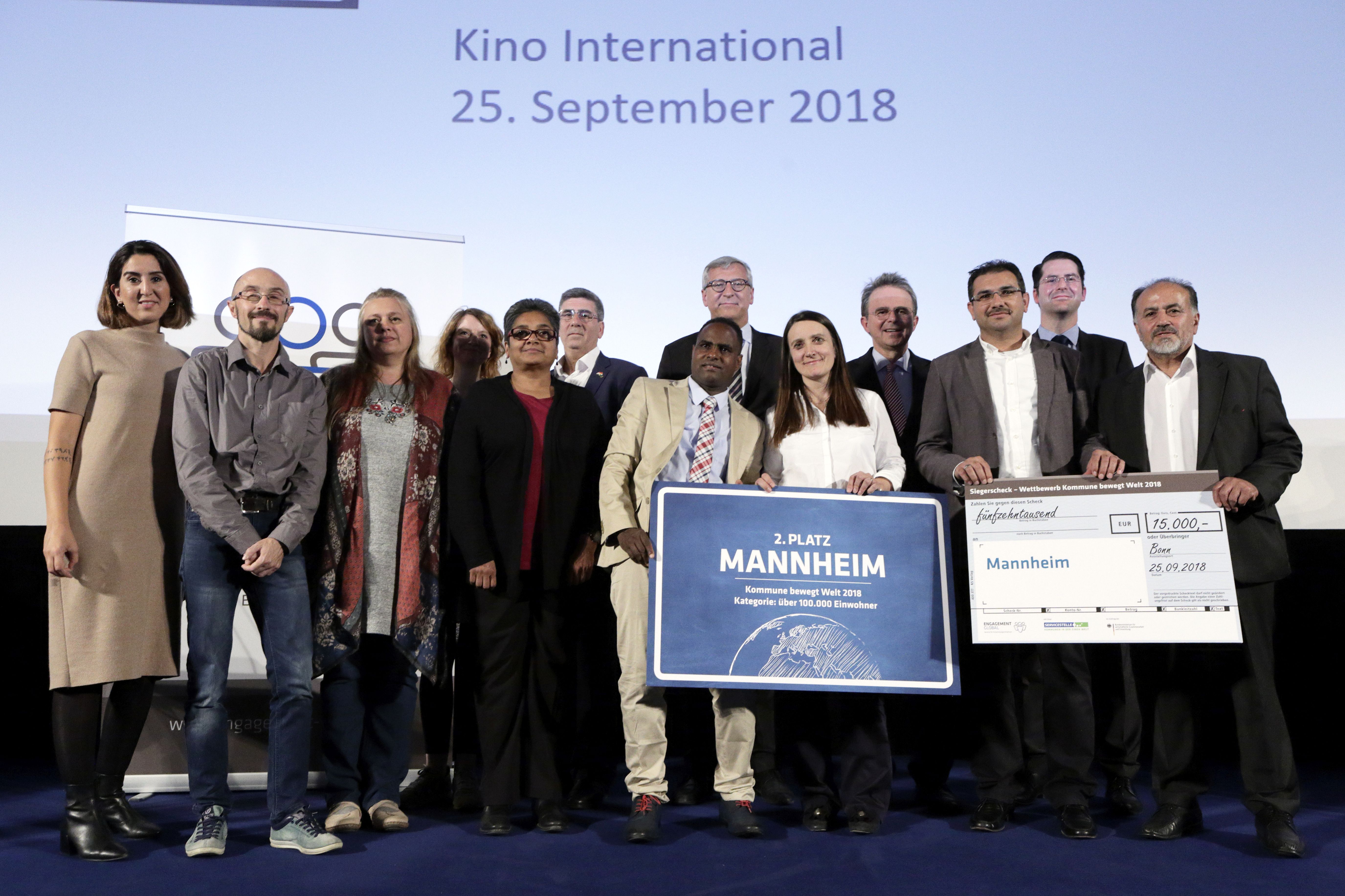 Die Mannheimer Delegation mit dem Preis "Kommune bewegt Welt"
