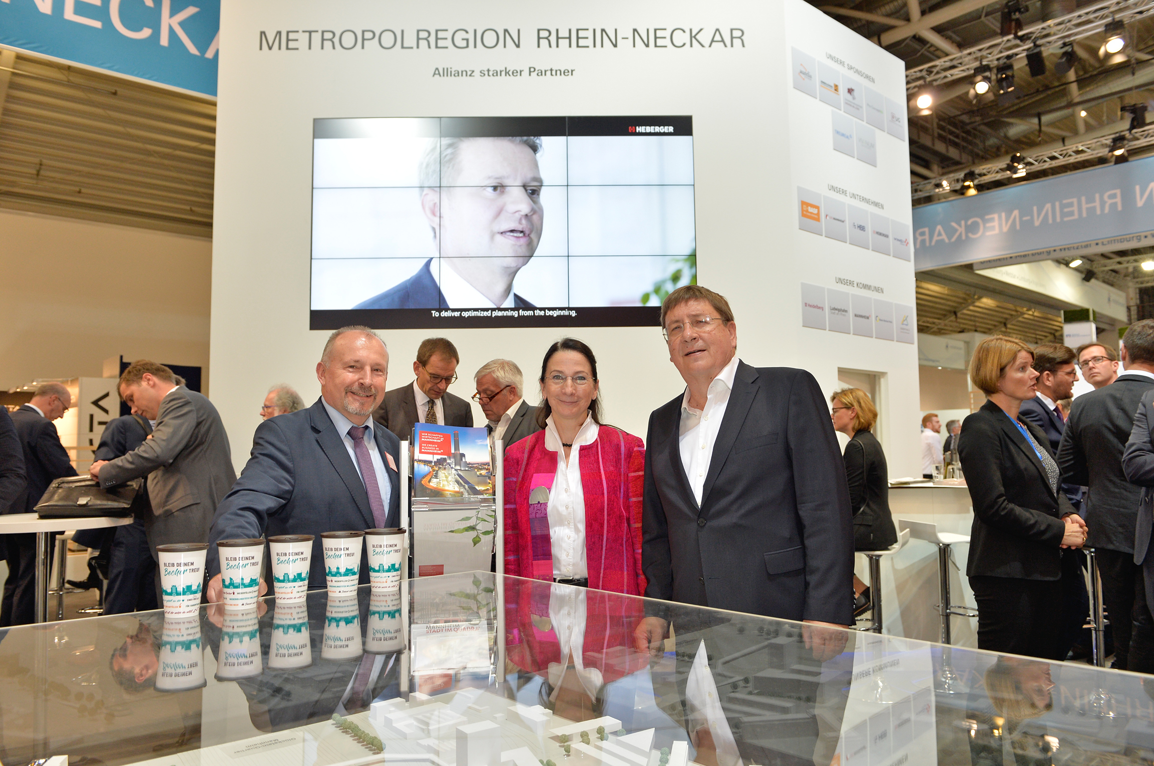 v.l.n.r.: Dr. Wolfgang Miodek und Christiane Ram von der Mannheimer Wirtschaftsförderung mit Baubürgermeister Lothar Quast