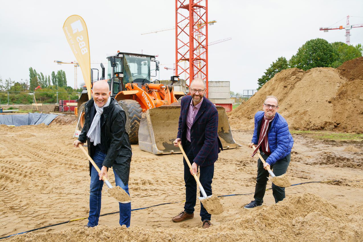 Setzten den Spatenstich für die neue Grundschule auf Spinelli (v.r.): Bildungsbürgermeister Dirk Grunert, BBS-Geschäftsführer Peter Doberass und MWSP-Geschäftsführer Achim Judt.