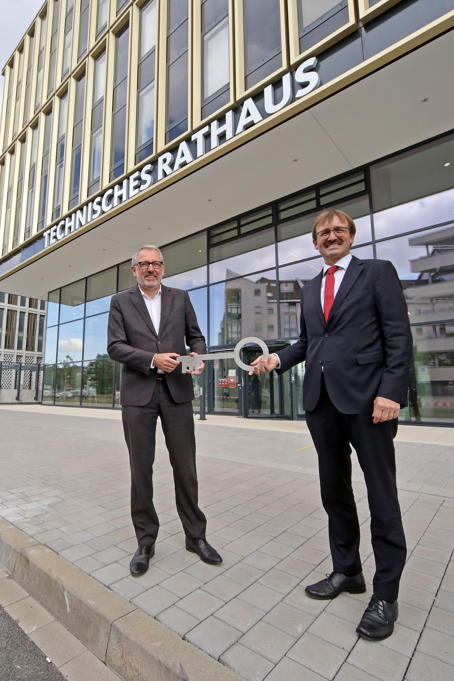 Unser Bild zeigt von links nach rechts: Bürgermeister Dirk Grunert, Anja Russow-Hötting, Vorsitzende des Gesamtpersonalrats der Stadt Mannheim, Oberbürgermeister Dr. Peter Kurz, Karl-Heinz Frings, Geschäftsführer der GBG und Bürgermeister Ralf Eisenhauer