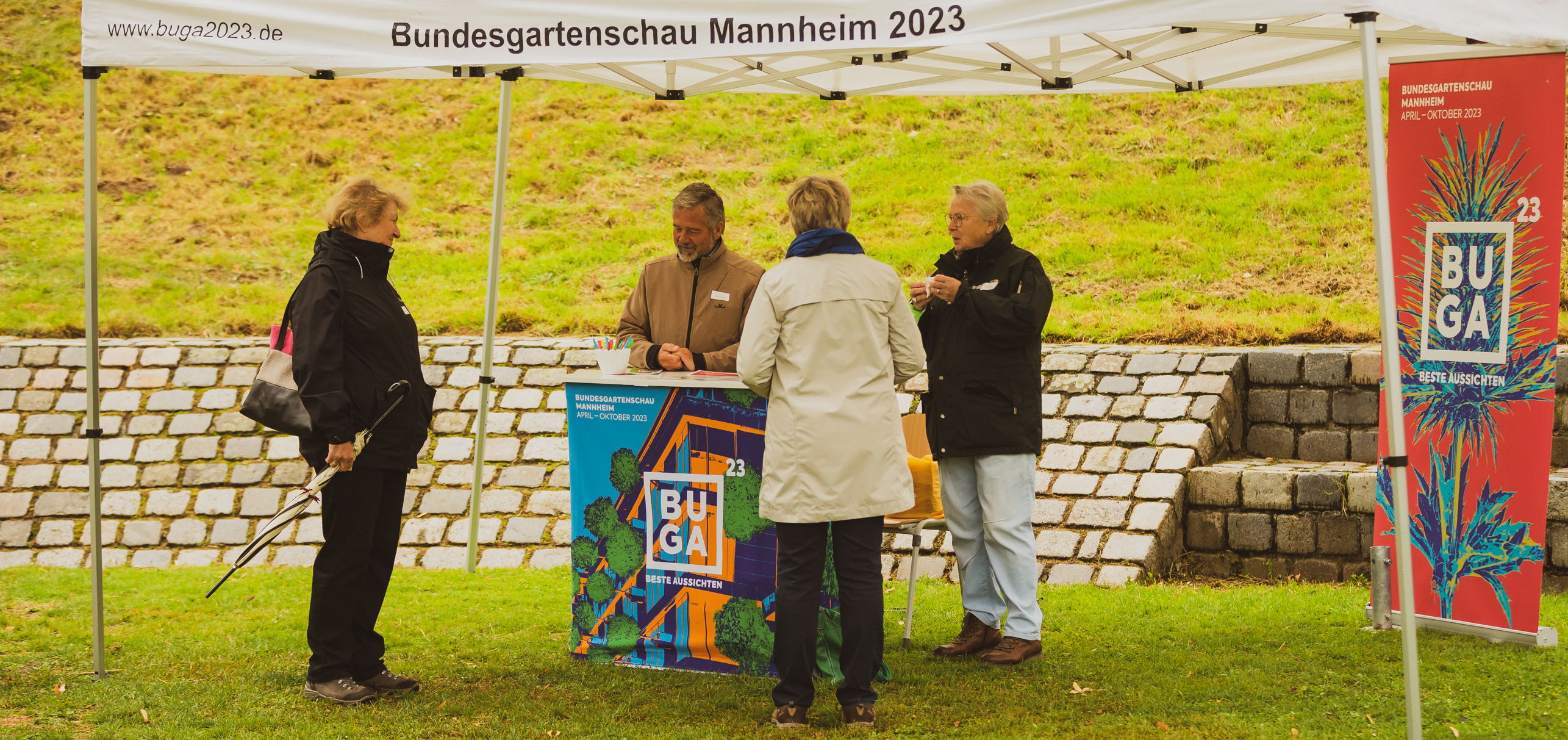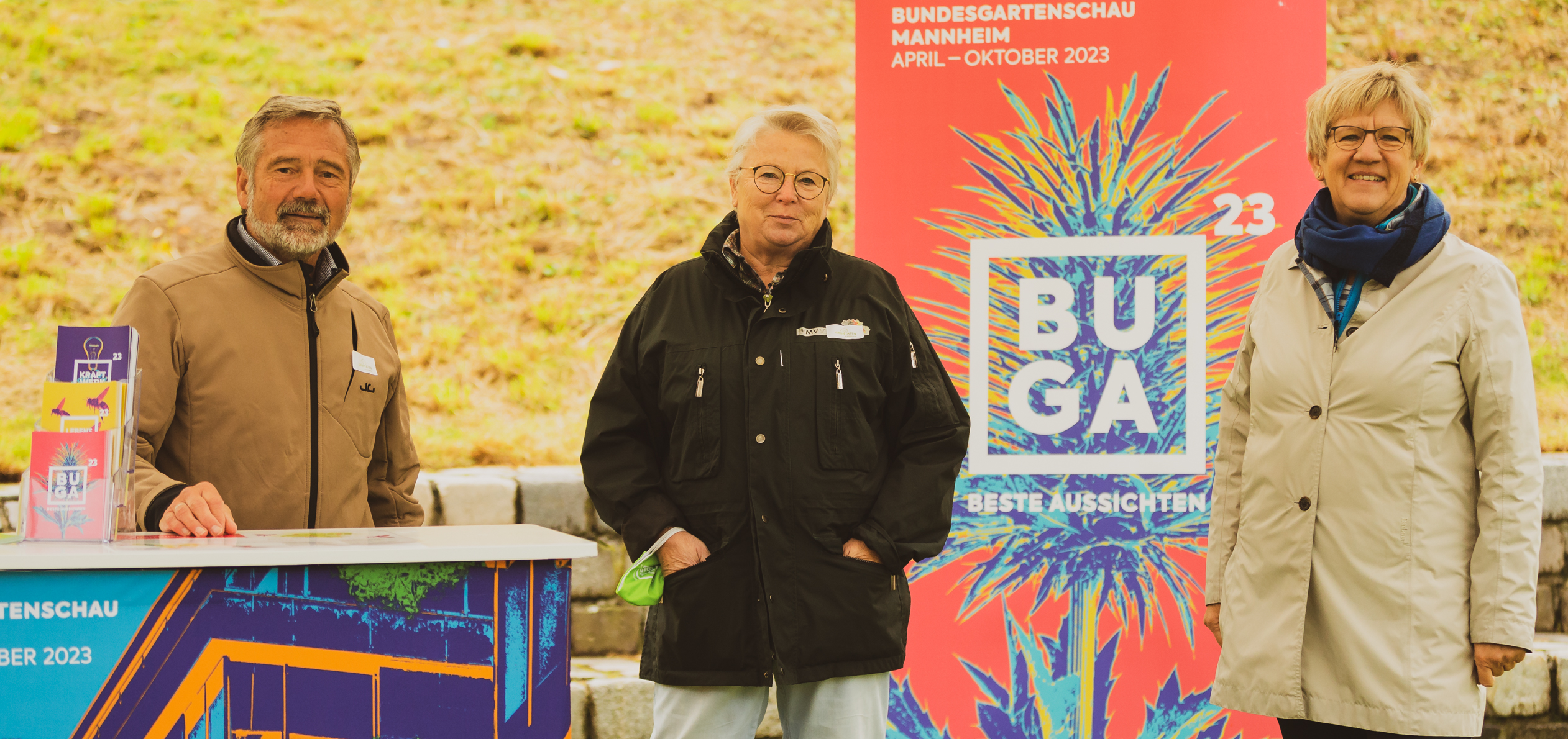 Bürgermeisterin Felicitas Kubala (rechts) am Stand des Freundeskreises der BUGA2023