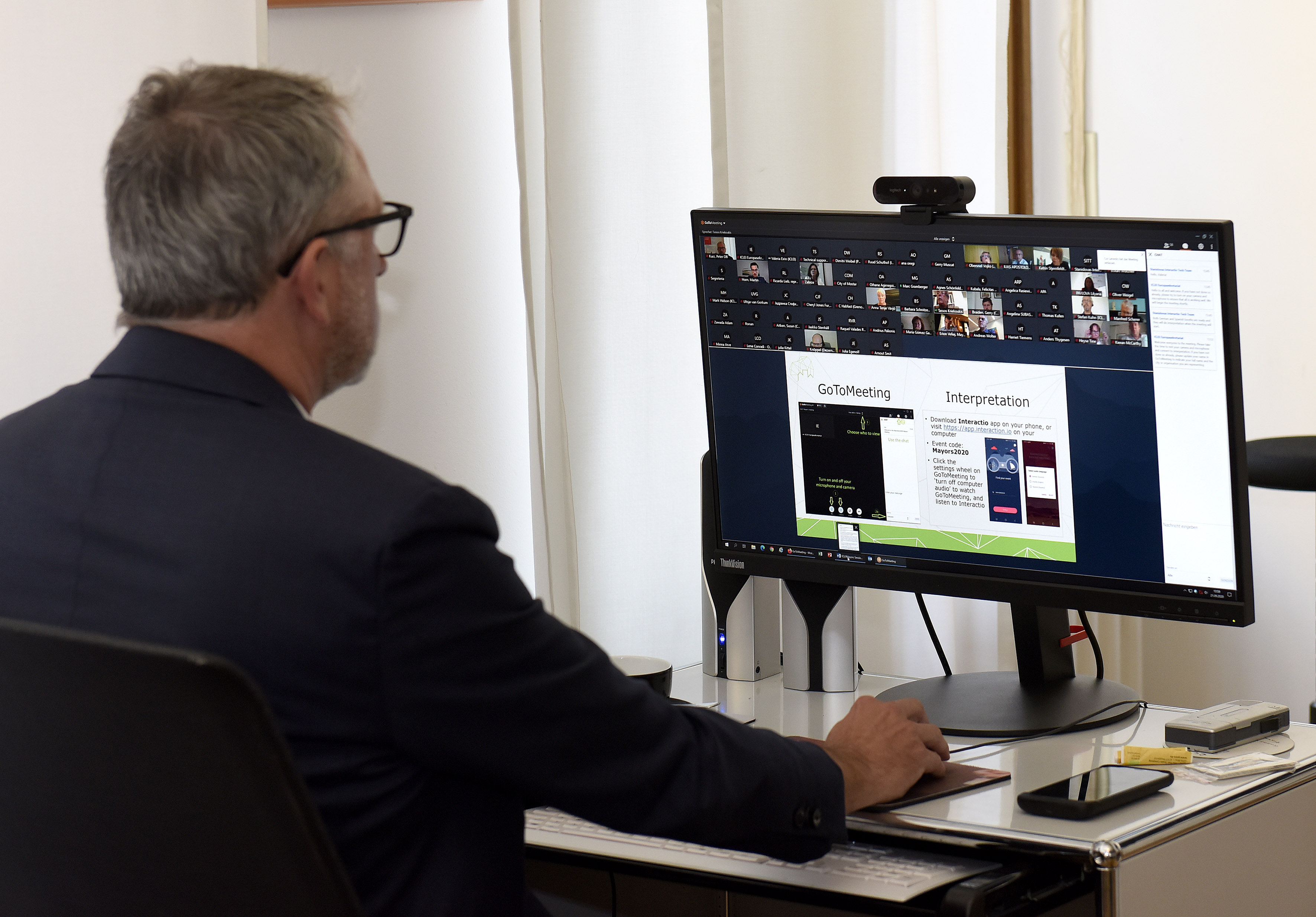 Oberbürgermeister Dr. Peter Kurz begrüßte im Rahmen einer Online-Konferenz  Oberbürgermeister*innen aus ganz Europa sowie Vertreter*innen wichtiger europäischer Institutionen zur digitalen Abstimmung über städtische Forderungen im Vorfeld der 9. Europäischen Konferenz für nachhaltige Städte.