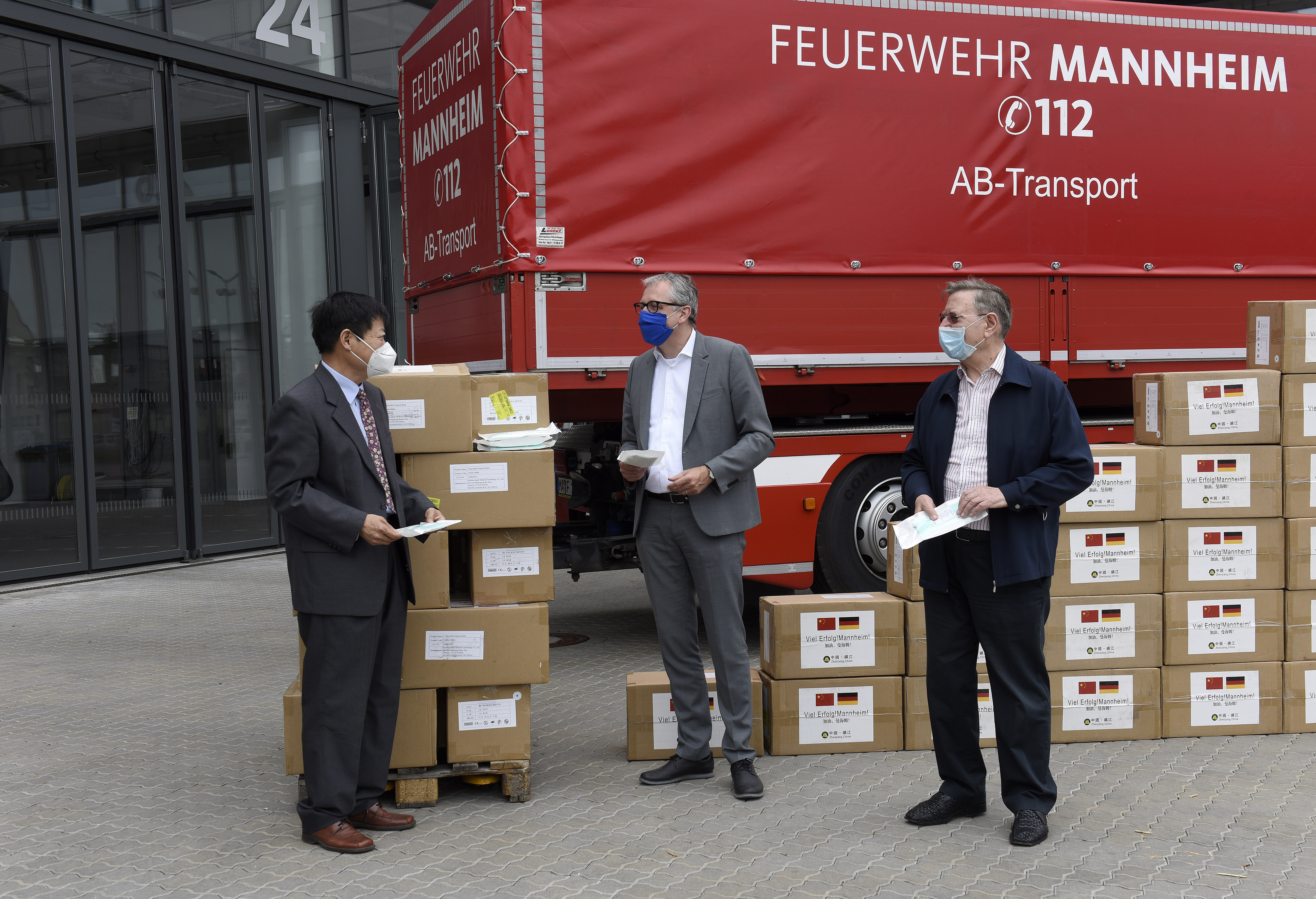 Übergabe Masken in der Hauptfeuerwache 3