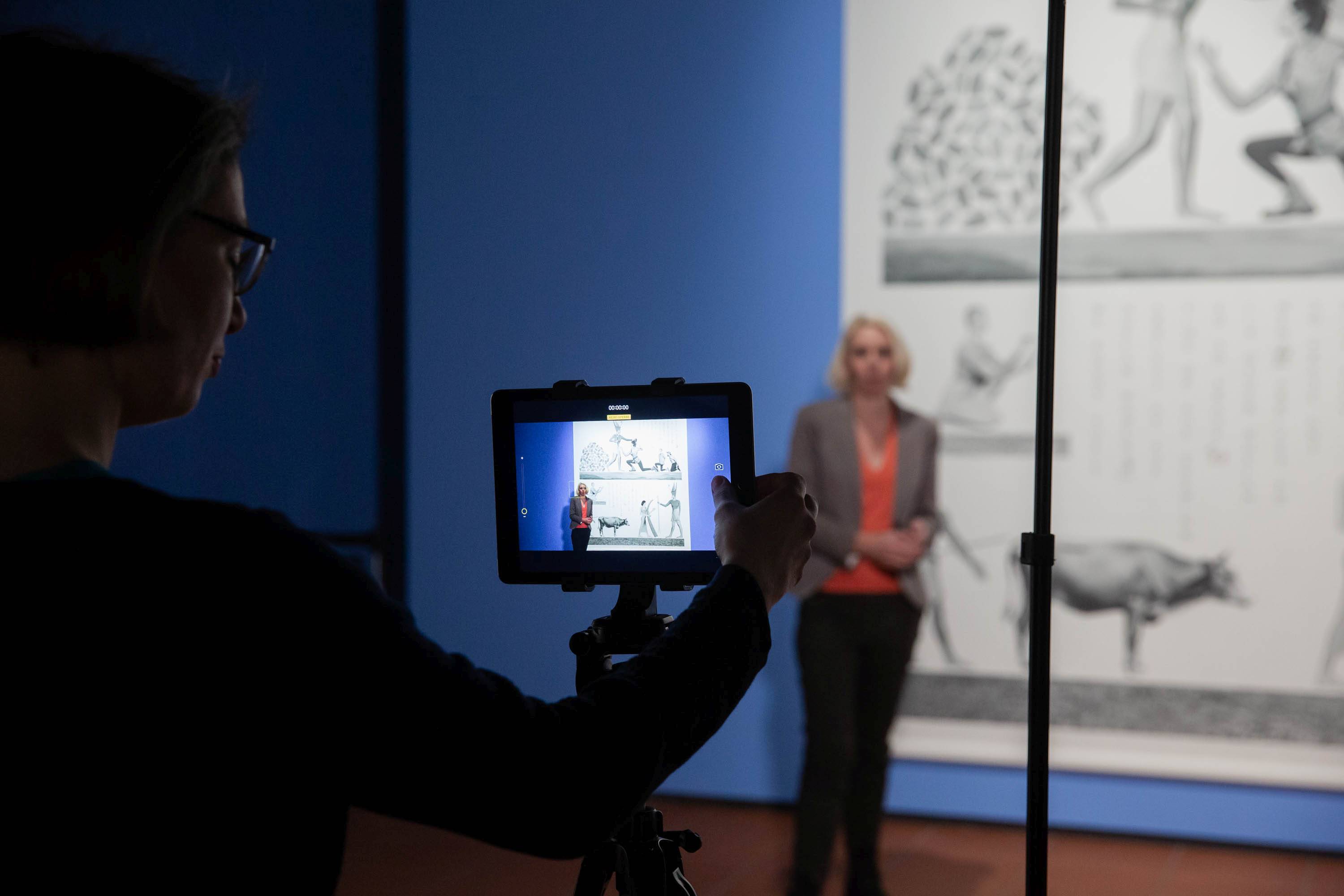 Kuratorin Dr. Gabriele Pieke bei Video-Aufnahmen in der Sonderausstellung "Yesterday - Tommorrow"