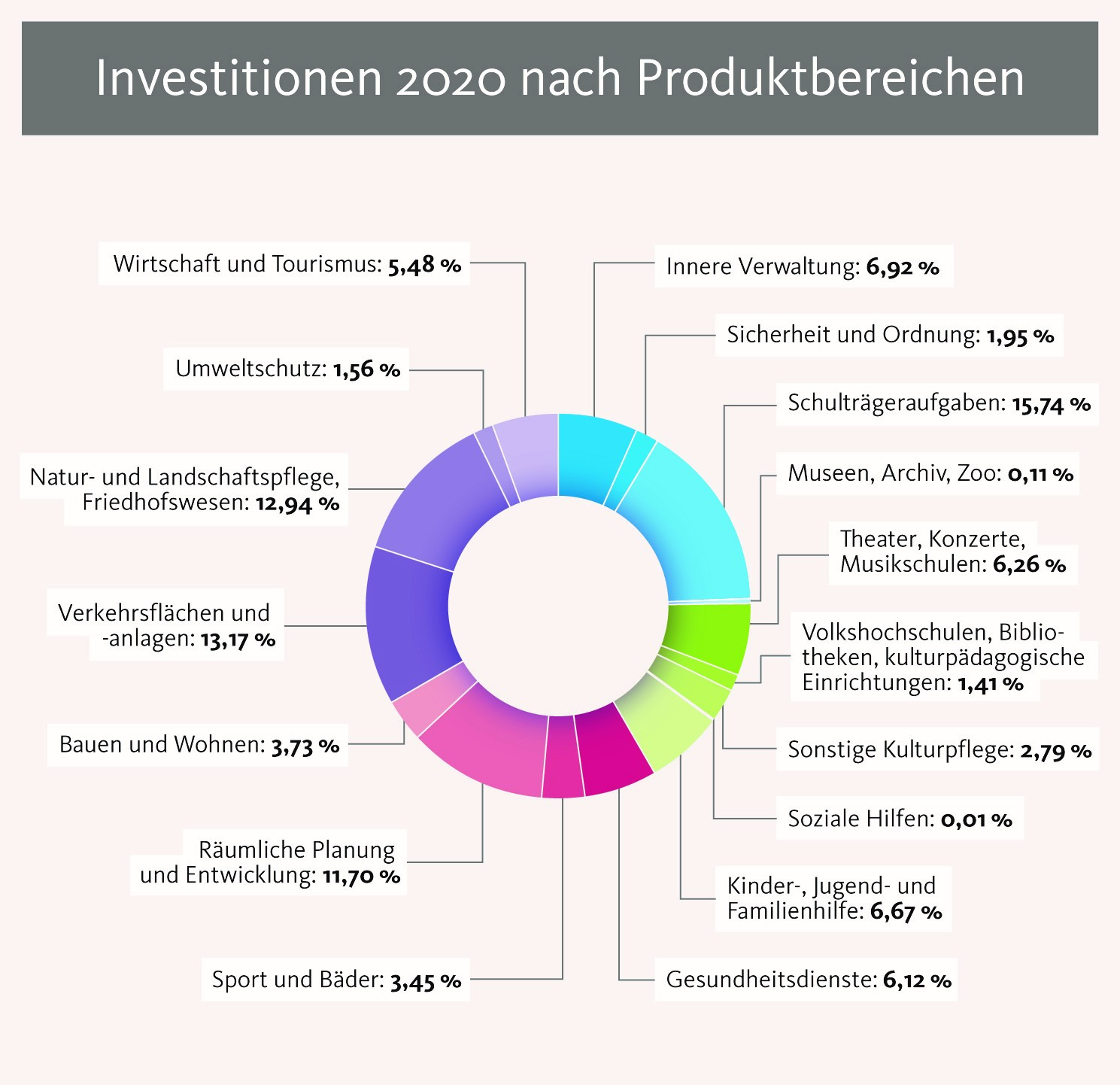 Investitionen für das Haushaltsjahr 2020 nach Produktbereichen.