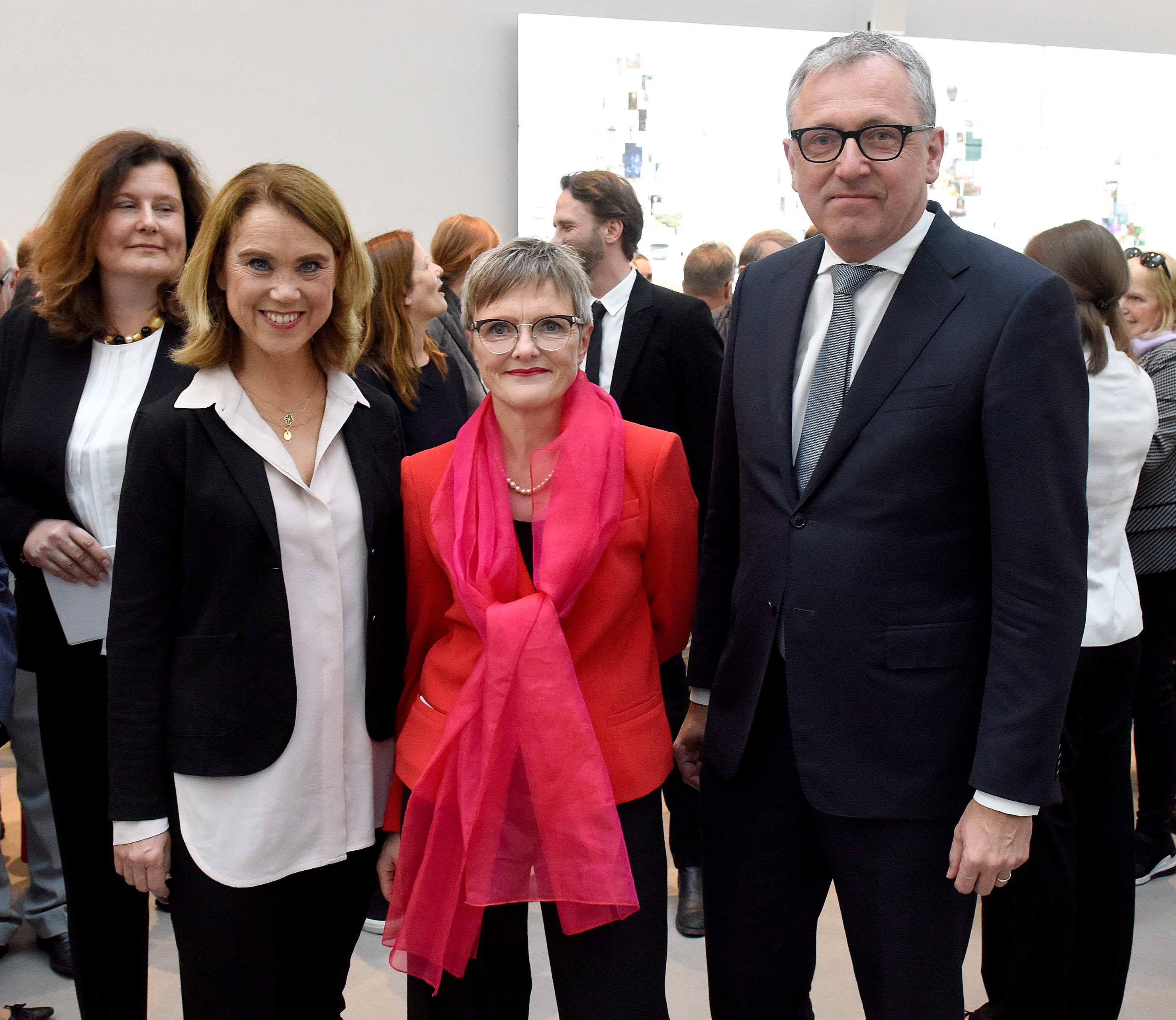 Auf dem Bild: Scheidende Kunsthallendirektorin Dr. Ulrike Lorenz (Mitte), Kunststaatssekretärin B-W Petra Olschowski (links), Oberbürgermeister Dr. Peter Kurz (rechts) sowie die Vorsitzende des Förderkreises für die Kunsthalle Mannheim Verena Eisenlohr.