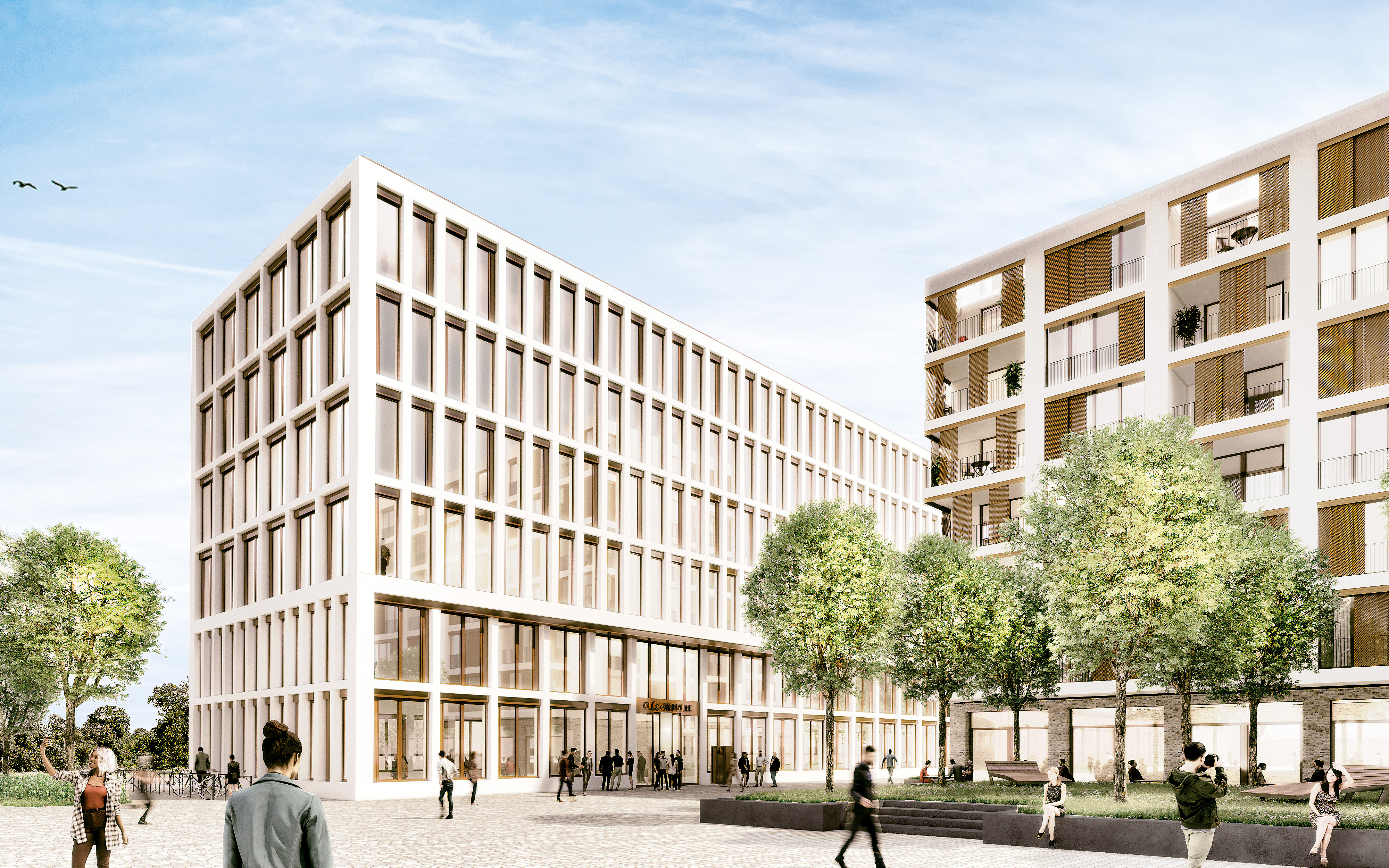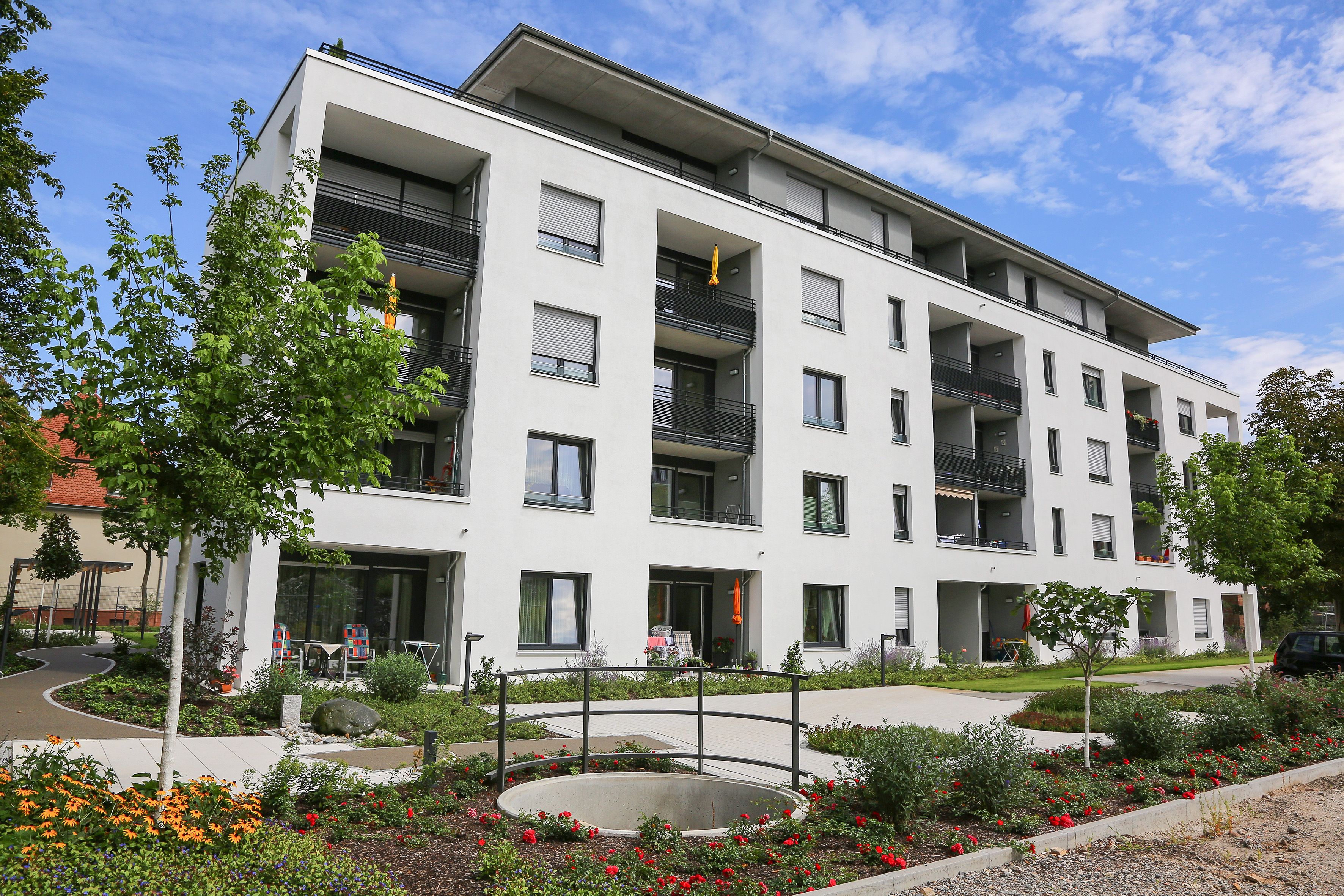 Auf dem Bild (v.l.n.r.): Carmen Mundorff (Geschäftsführerin Architektenkammer Baden-Württemberg), Manfred Lucha (Minister für Soziales und Integration Baden-Württemberg), Karin Storch ( Storch + Federle Architekten), Thomas Seifert (Betriebsleiter Theodor Fliedner Haus)