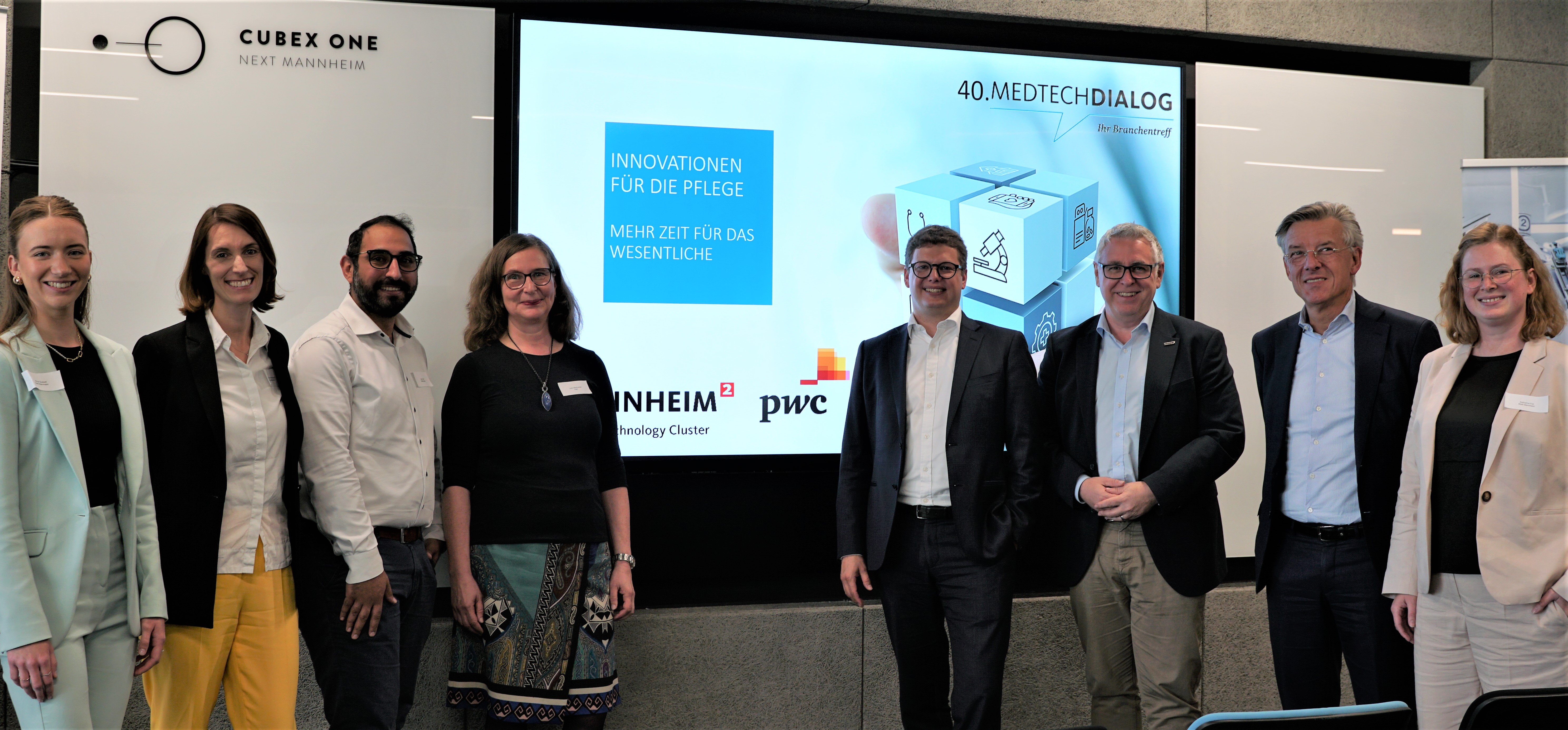 Diesen und weiteren Fragen ging der 40. MedTech-Dialog mit dem Titel „Innovationen für die Pflege – Mehr Zeit für das Wesentliche“ auf den Grund. Doris Borgwedel (Pflegedirektorin) und Cem Demir (Pflegerische Leitung) vom Zentralinstitut für Seelische Gesundheit referierten zum Thema „Digitalisierung in der psychischen Pflege“, Anna Windisch, Chief of Marketing von QUMEA, stellte das von ihrem Unternehmen entwickelte „KI-basiertes Frühwarnsystem im Patientenzimmer“ vor und Markus Bauer sowie Michael Ey (PwC) informierte über „Innovative digitale Lösungen – Wege in die Pflege“.