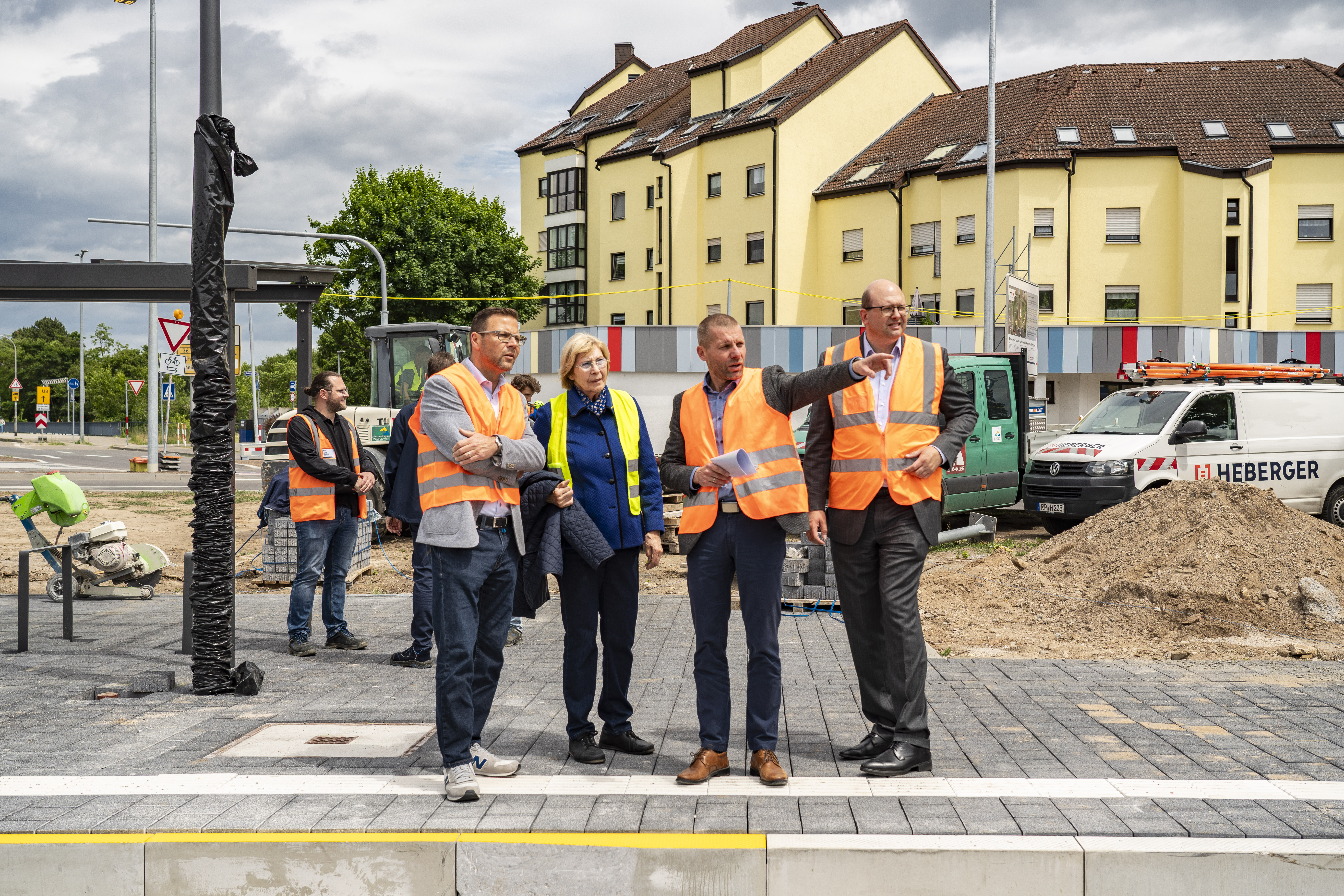 Dr. Volker Proffen, Bürgermeister und ÖPNV-Dezernent der Stadt Mannheim, überzeugte sich bei einem Ortstermin vom Fortgang der Baumaßnahme: „Die Haltestelle Karlsplatz ist ein zentraler Knoten im Mannheimer Süden und gleichzeitig End- bzw. Startpunkt unserer geplanten Konversionslinie nach Franklin. Ich freue mich, dass wir mit der Maßnahme so gut vorankommen, denn der Ausbau der Haltestelle Karlsplatz ist auch ein weiterer großer Schritt in Richtung Verkehrssicherheit: zum einen gestalten wir damit auch hier eine barrierefreie Zu- und Umsteigemöglichkeit, zum anderen wird vor allem auch der Straßenraum durch die Umgestaltung viel übersichtlicher – für die Fahrgäste sowie für alle anderen Personen, die sich hier im Verkehrsbereich aufhalten“.