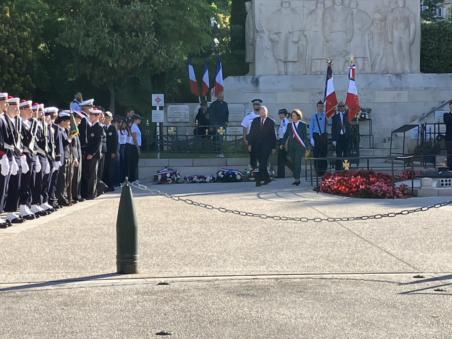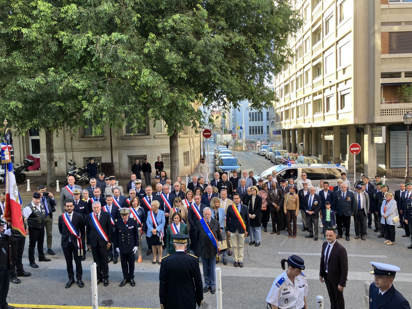 Am 8. Mai nahm Oberbürgermeister Christian Specht am offiziellen Gedenken zum Ende des Zweiten Weltkriegs teil. Er legte zusammen mit seiner Amtskollegin, Oberbürgermeisterin Josée Massi, einen Kranz am Ehrendenkmal der Gefallenen nieder: „Es war für mich ein besonderer Moment, ein so bedeutendes Ereignis zu ehren. Vor 79 Jahren endete der dunkelste Moment in der Geschichte Deutschlands - ein Erbe, das wir Deutschen jeden Tag mit uns tragen. Es war bewegend, bei der Zeremonie heute dabei zu sein und derer zu gedenken, die in diesem schrecklichen Krieg ihr Leben verloren haben. Aus den Trümmern des Krieges ist etwas ganz Besonderes entstanden: die Freundschaft zwischen Mannheim und Toulon, sowie zwischen Hunderten anderer deutscher und französischer Städte“, erklärte der Oberbürgermeister. Die Zeremonie wurde untermalt durch den Marinemusikcorps Toulon. Hervorzuheben ist die Teilnahme des Admirals der Marinebasis und der Veteranen aus verschiedenen Epochen.