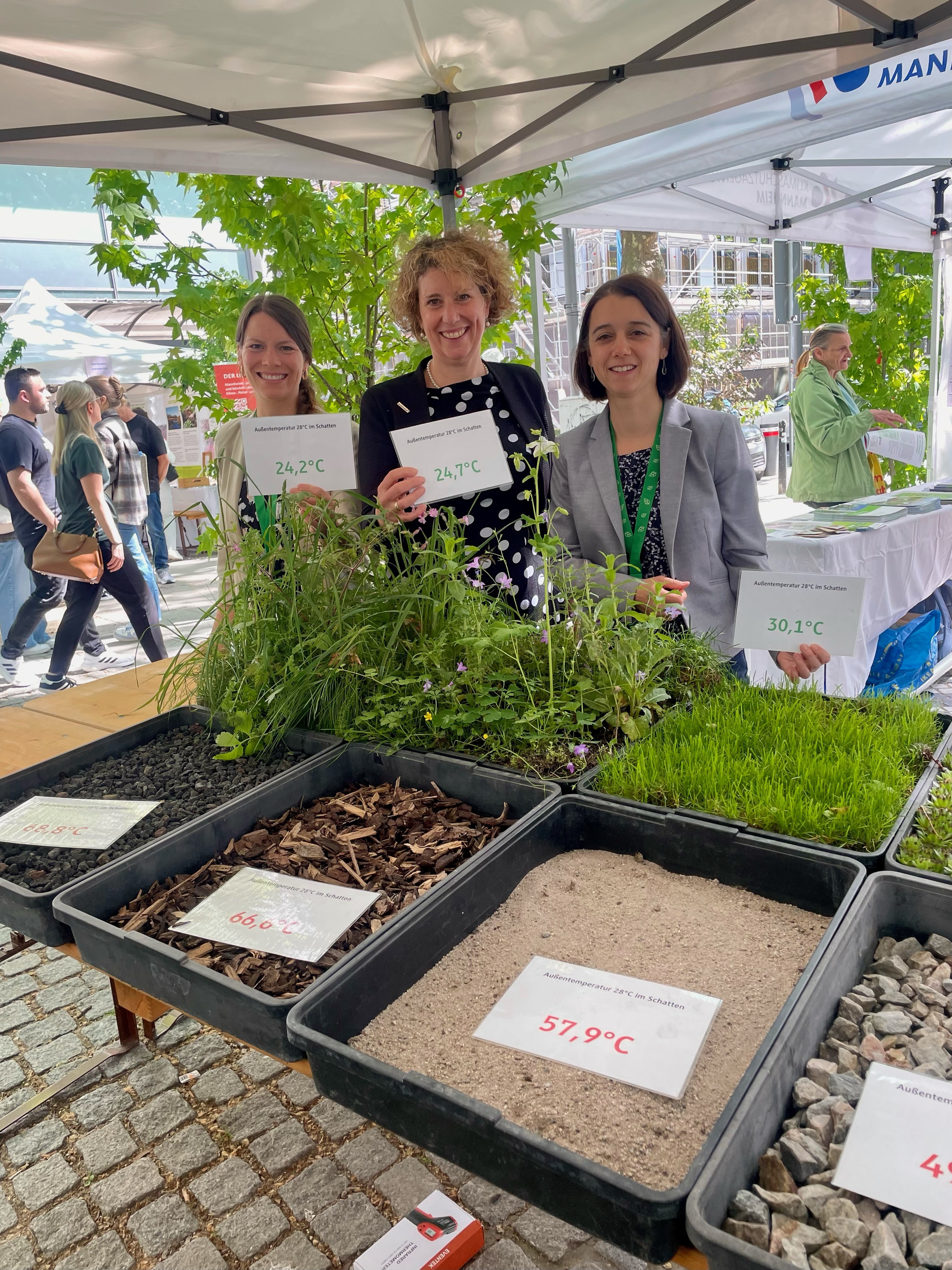 „Klimakrise und Biodiversitätskrise sind zwei Seiten derselben Medaille. Man kann die eine Krise nicht lösen, ohne auch die andere anzugehen.“, erläutert die Erste Bürgermeisterin Prof. Dr. Diana Pretzell bei der Eröffnung der Veranstaltung. „Die Begrünung der Städte kann gleichzeitig zur Verbesserung des Mikroklimas führen sowie Lebensräume für Insekten schaffen. Denn Städte sind inzwischen oftmals Rückzugsorte für Insekten und andere Lebewesen geworden.“ Von Baumscheibe über begrünte Fassaden bis zur Gestaltung des Vorgartens oder sogar des Grabs: Die Ausstellenden zeigten viele Möglichkeiten, Mannheim grüner zu gestalten und die Artenvielfalt zu fördern. Wer keinen grünen Daumen hat, kann trotzdem mit seinem Smartphone etwas für die Artenvielfalt tun: Am Stand des Local Green Deal und der Abteilung Klimaschutz wurden zwei Citizen-Science-Projekte vorgestellt: Eine App zur Schmetterling-Zählung (VielFalterGarten) und eine App zur Kartierung von Stadtbäumen (Urban ReLeaf). Die GBG-Unternehmensgruppe präsentierte verschiedene Begrünungsprojekte aus dem Konzern und der BIG-Lindenhof die ersten Klimadaten aus ihrem Tiny Forest.