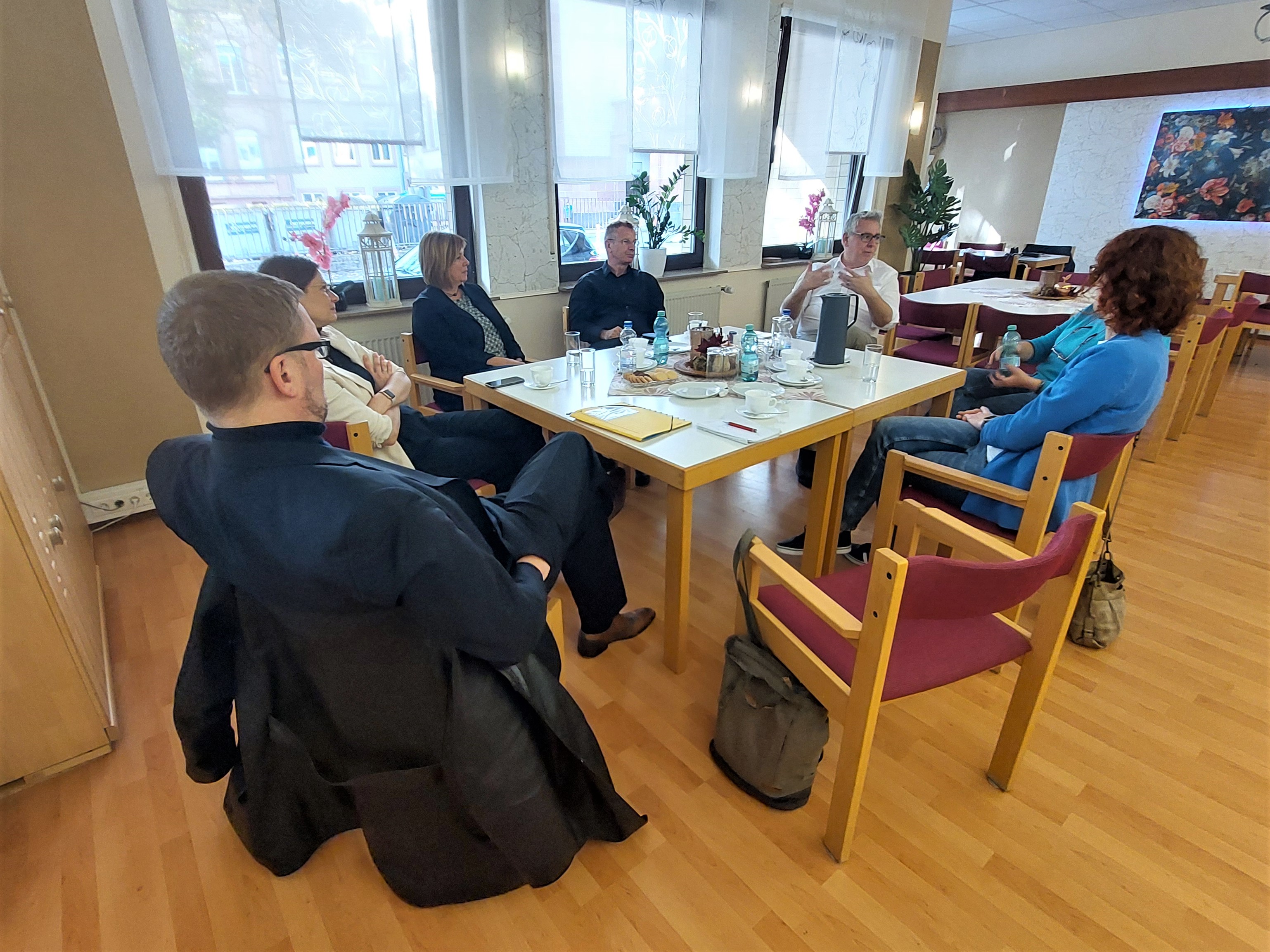 Soziale Vernetzung, Kooperationen mit Partnern und der Aufbau bzw. das Sichtbarmachen von Strukturen im Stadtteil waren auch zentrale Themen bei der darauffolgenden Station im SeniorenTreff Feudenheim mit Dr. Jens Hildebrandt, Leiter des Fachbereich Arbeit und Soziales, sowie Jutta Breitner, Abteilungsleiterin Betreuung und Senioren, und ihrem Team vor Ort. Darüber hinaus ging es um das Pflegemanagement, die Strukturierung der Angebote der SeniorenTreffs sowie die Erhöhung ihres Bekanntheitsgrads im Stadtteil. „Vor dem Hintergrund einer älter werdenden Gesellschaft haben wir einen großen Bedarf an Angeboten für Senior*innen. Deshalb ist es mir wichtig, Strukturen aufzubauen, die belastbar sind damit ältere Mitbürger*innen in ihren eigenen vier Wänden leben können.“ Dazu sei es notwendig, eine Infrastruktur vorzuhalten, die nicht nur den Einkauf für den täglichen Bedarf ermöglicht, sondern auch Pflege- und Versorgungsangebote macht, so Riehle weiter.