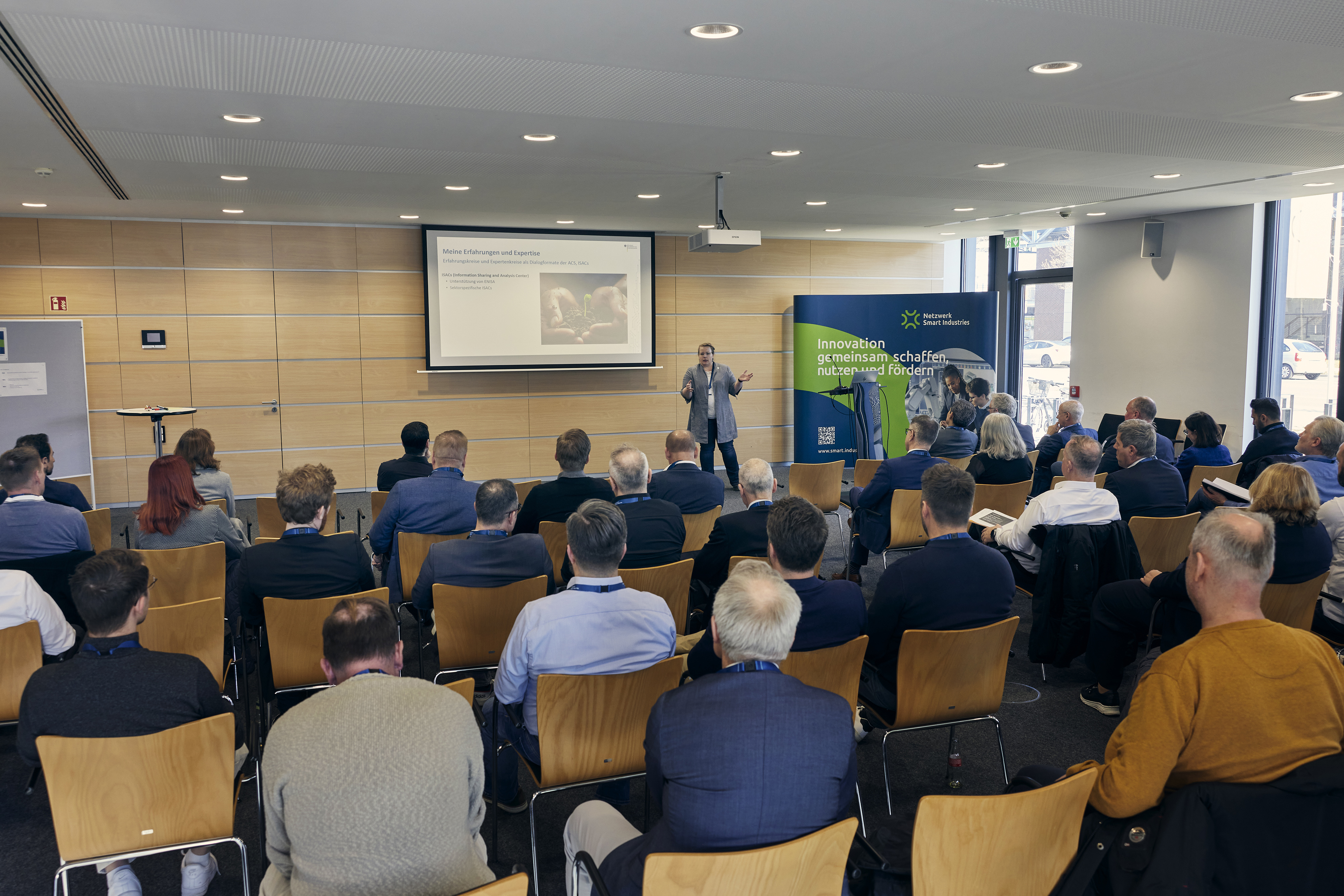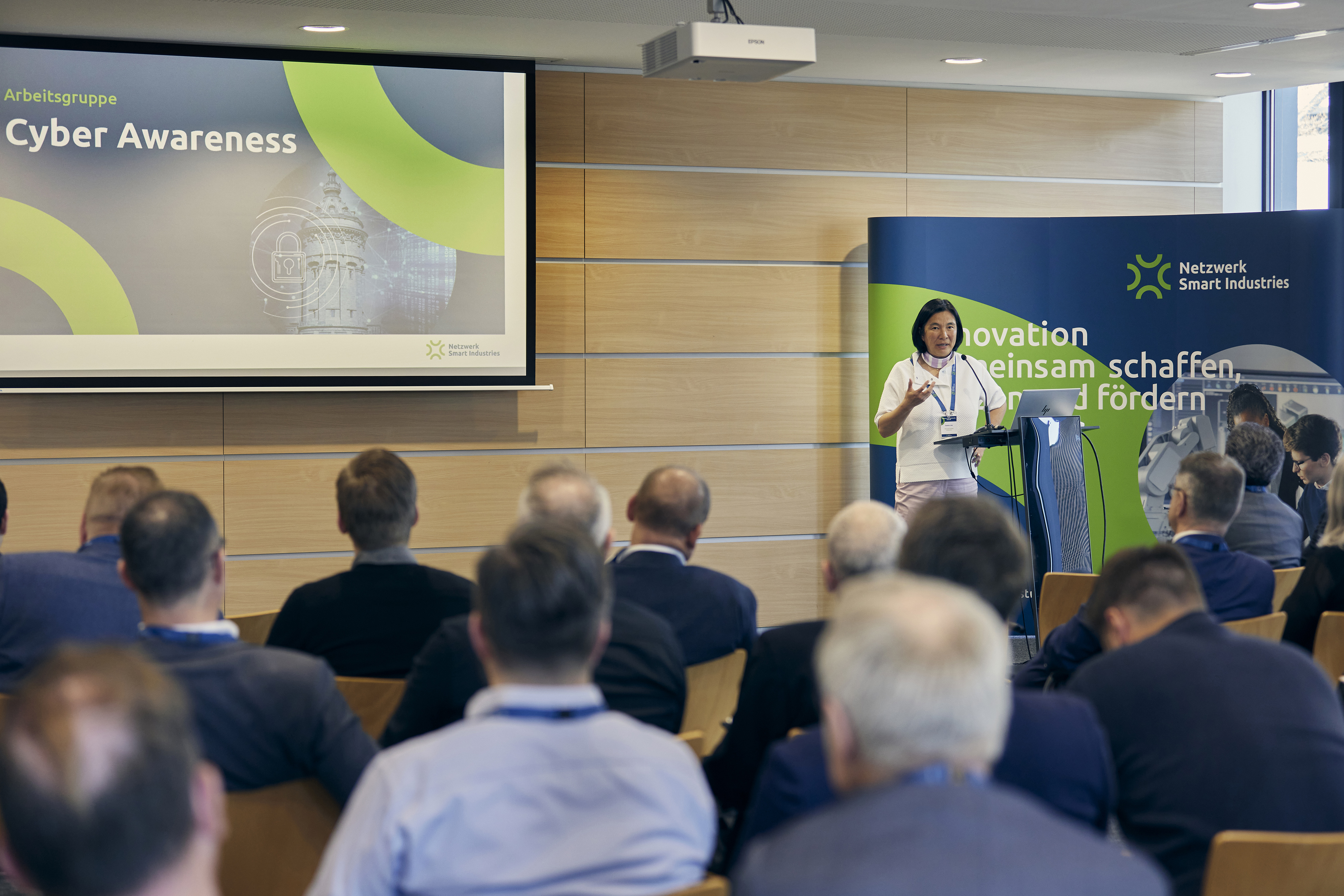 Nach der Begrüßung durch Riehle und Sandra Link, Geschäftsführerin des Netzwerks Smart Industries, folgte ein Impulsvortrag von Dr. Dina Truxius vom Bundesamt für Sicherheit in der Informationstechnik (BSI). Sie beleuchtete aktuelle Bedrohungsszenarien und zeigte die Chancen und Möglichkeiten einer Zusammenarbeit beim Schutz vor Cyberangriffen auf. Anschließend wurde die Struktur der Community vorgestellt, die sich in fünf thematische Arbeitsgruppen gliedert: Cyber Awareness, Notfall- und Krisenmanagement, Fachkräfte- und Kompetenzentwicklung, IT-Compliance sowie Technische Infrastruktur.