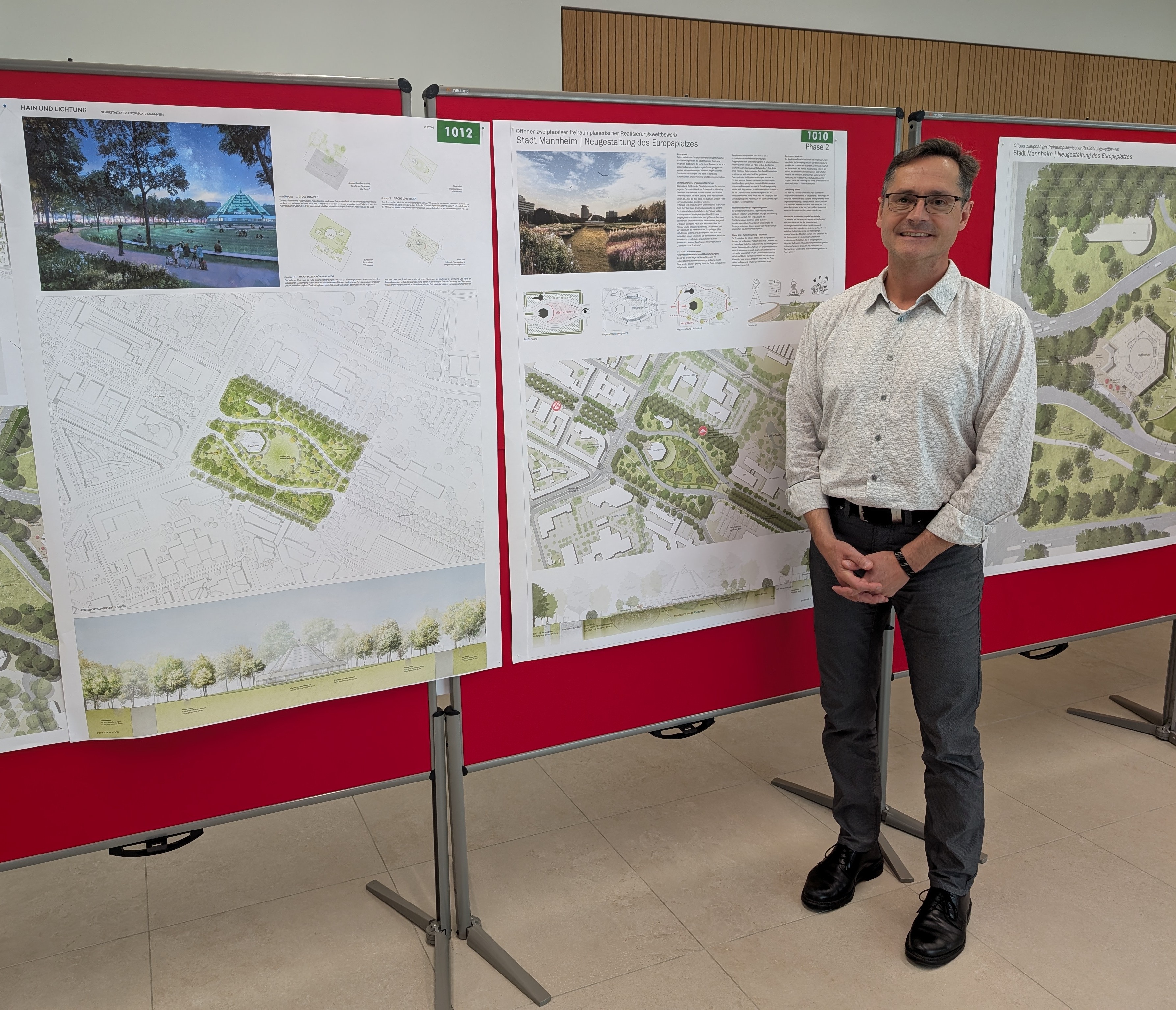 „Ziel des Wettbewerbs war es, mehrere planerische Lösungen dafür zu erhalten, wie der Europaplatz zukünftig zu einem attraktiven Stadtein- und ausgang werden kann, der Bestandssituationen sinnvoll integriert und sich in das Freiraumgefüge der Stadt Mannheim einfügt und es ergänzt, der gleichermaßen nutzerische sowie klimatische und ökologische Qualitäten aufweist und der den europäischen Gedanken wiederspiegelt. Die beiden Siegerentwürfe machen dies deutlich“, führt der Vorsitzende Christof Luz aus.
