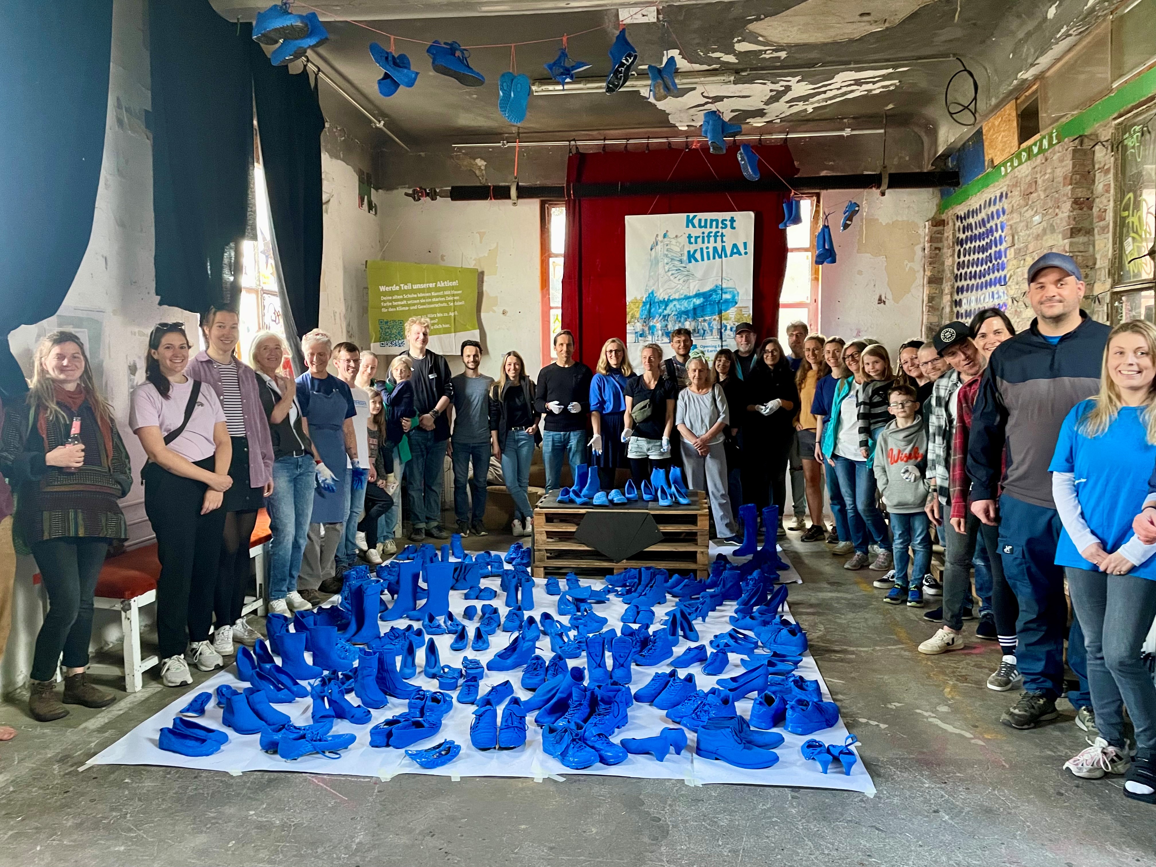 Leckere Kuchen, gute Musik und viele blaue Schuhe: Beim Opening Event zur Earth Hour am 22. März kamen Kunst und Klimaschutz zusammen. Alte, unbrauchbare Schuhe wurden an diesem Nachmittag im Peer 23 mit kobaltblauer Farbe von 50 Besuchern angemalt. Die Idee geht auf den Heidelberger Künstler Frank Schlottmann zurück, der mit der Aktion eine kraftvolle visuelle Botschaft für den Klimaschutz setzt. Anlass der Kunst-Mitmachaktion ist die Earth Hour am 22. März, die in diesem Jahr auf den gleichen Tag wie der Weltwassertag fällt. Das Event wurde von der Klimaschutzagentur Mannheim zusammen mit dem Peer23 e. V. und der Surfrider Foundation Baden-Pfalz organisiert.