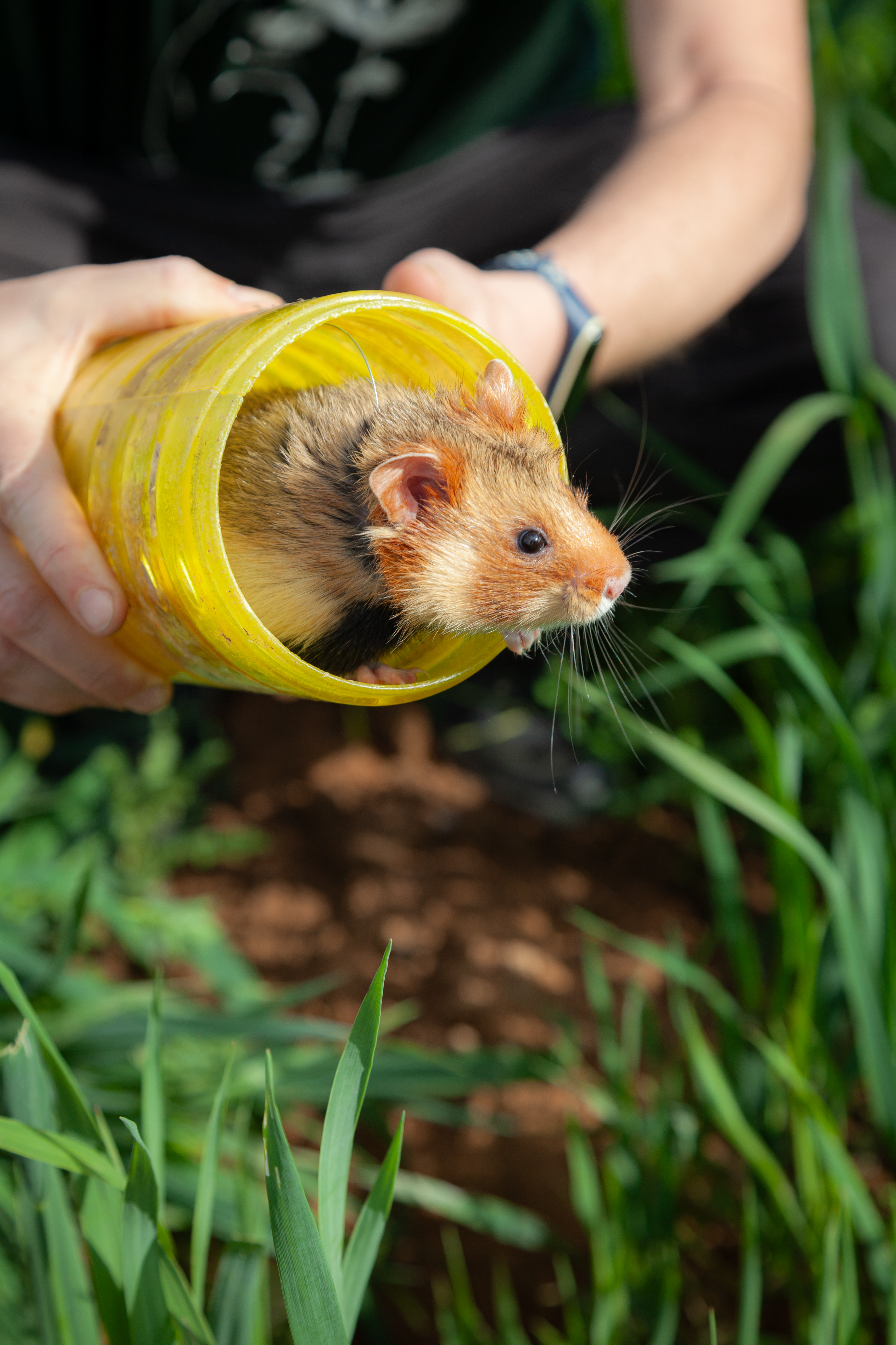 „Ich freue mich jedes Jahr auf die Auswilderung dieser sympathischen Tierart. Doch der Termin hat einen ernsten Hintergrund. Mit der Wiederansiedlung wollen wir langfristig einen überlebensfähigen Tierbestand etablieren. Dabei sind wir zwar auf einem guten Weg, aber noch nicht am Ziel. Dieses erreichen wir auch nur gemeinsam mit den ortsansässigen Landwirten und deren feldhamsterfreundlichen Bewirtschaftung der Äcker. Diese gute Zusammenarbeit mit den ortsansässigen Landwirten möchte ich besonders betonen und mich dafür bedanken“, erklärt Erste Bürgermeisterin Prof. Dr. Diana Pretzell im Rahmen der Auswilderung. In Mannheim bewirtschaften mehrere Landwirte auf rund 165 Hektar ihre Ackerflächen feldhamstergerecht, sodass der Feldhamster dort einen geeigneten Lebensraum findet. Sie arbeiten im Auftrag der Naturschutzbehörden der Stadt Mannheim und des Regierungspräsidiums Karlsruhe. Im Jahr 2023 wurden insgesamt ca. 433 ha im Auftrag der Stadt kartiert, mit dem Ergebnis, dass man 134 Hamsterbauten festgestellt hat.