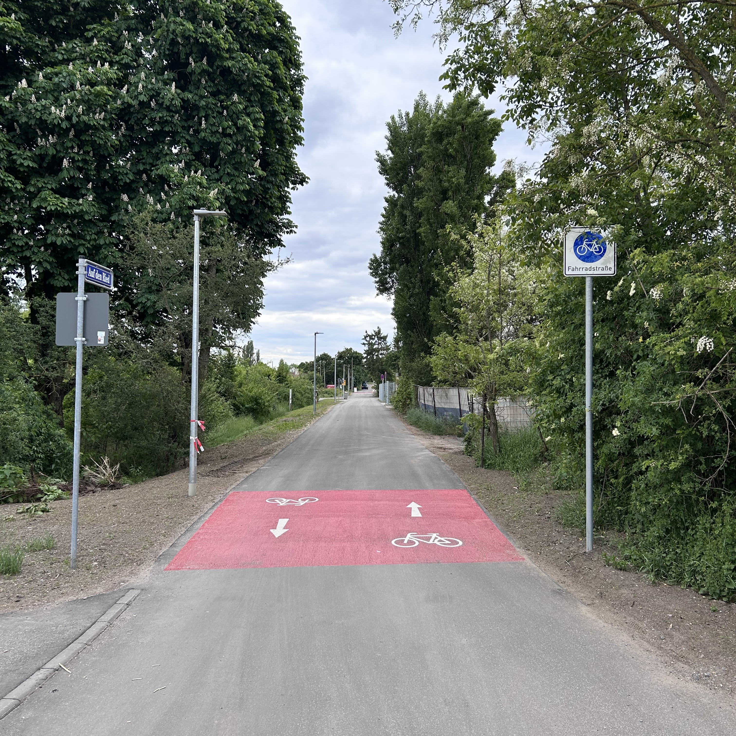 Der Ausbau der Fahrradstraße „Auf den Ried“ wurde nach rund fünfmonatiger Bauzeit planmäßig Ende April 2025 abgeschlossen. Die neue Radstrecke erstreckt sich vom Anschluss an die Sudetenstraßenbrücke bis zur Römerstraße und stellt einen bedeutenden Zubringer zur Radschnellverbindung Mannheim-Darmstadt (RS 15) dar.