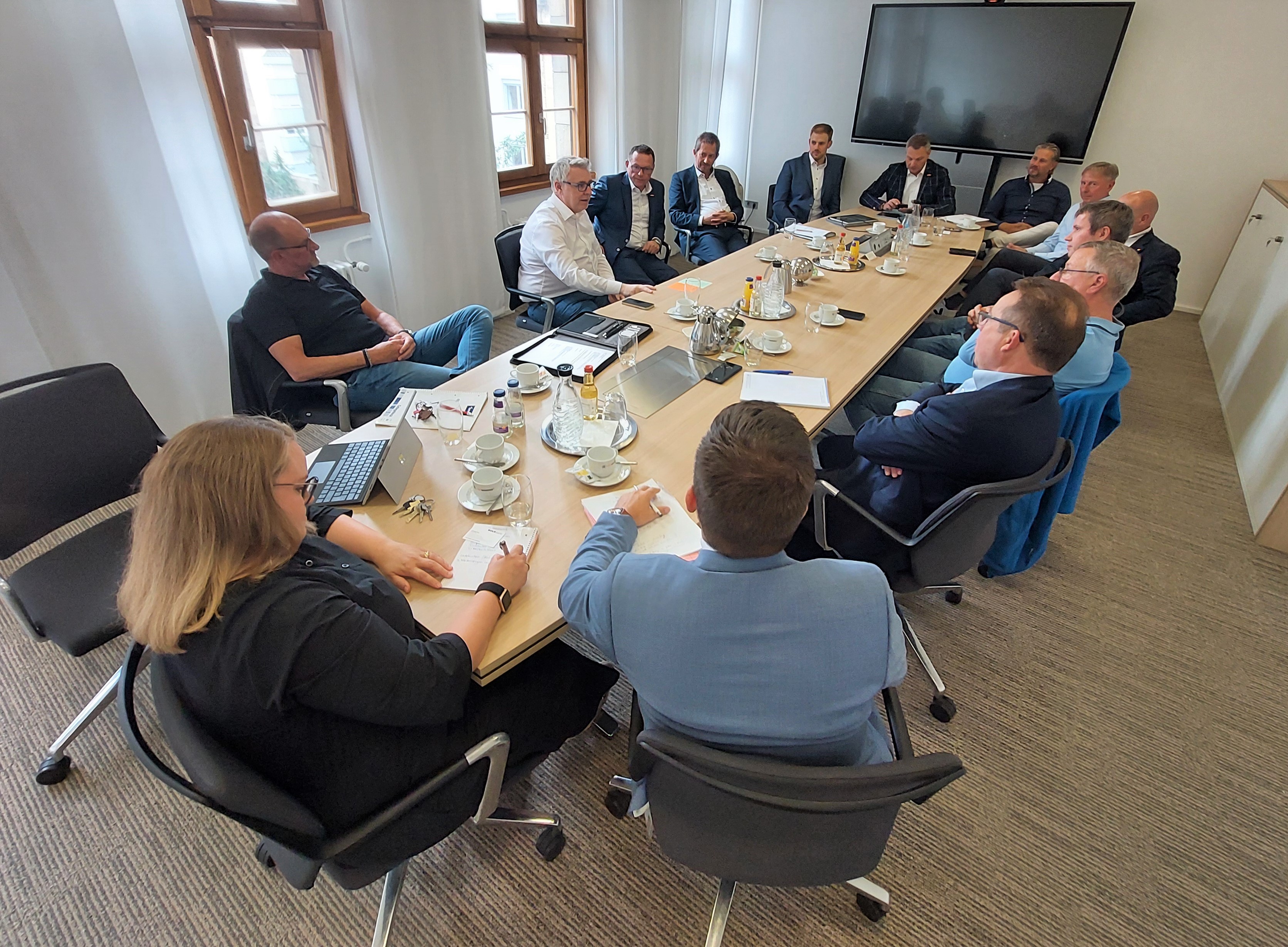 Wie können wir bei zentralen Themen gut und vertrauensvoll zusammenarbeiten? – diese Fragestellung bildete die inhaltliche Klammer des ersten „Fachdialogs Handwerk“, zu dem Wirtschaftsbürgermeister Thorsten Riehle gemeinsam mit der Wirtschaftsförderung den Präsidenten der Handwerkskammer Mannheim Rhein-Neckar-Odenwald, Klaus Hofmann, sowie die Kreishandwerks- und Innungsmeister in das Rathaus eingeladen hatte. „Mir ist es wichtig, die Gesamtheit der Wirtschaft zu betrachten. Dabei ist das Handwerk insgesamt für die Wirtschaftsstruktur in unserer Stadt von großer Bedeutung“, so Riehle mit Blick auf nahezu 14.000 Handwerksunternehmen mit über 86.000 Beschäftigen im Bereich der hiesigen Handwerksammer. Hofmann betonte: „Es ist ein tolles Signal, die Gremien des Handwerks gemeinsam mit der Wirtschaftsförderung an einen Tisch zu bringen.“ Für das Handwerk sei es wichtig, innerhalb der Verwaltung feste Ansprechpersonen zu haben, die die Themen dann intern koordinieren, adressierte Hofmann zentrale Belange der Innungen. Den Teilnehmenden ging es darum, neben dem Austausch einen Fahrplan für eine weitere Zusammenarbeit zu vereinbaren. So gehe es nun darum, zur Gestaltung der ökologischen Transformation die relevanten Player an einen Tisch zu holen, die Einbindung von Geflüchteten in Ausbildung und Beschäftigung voranzutreiben und zu prüfen, wie sich Unternehmen für Tageselternstrukturen zusammenschließen können, um Angebote der Kinderbetreuung zu verbessern. „Am Ende des Tages muss die Ermöglichung stehen. Wir werden uns zukünftig in einer regelmäßigen Taktung treffen, um zu sehen, wo wir stehen oder wo es noch hakt“, Riehle abschließend.