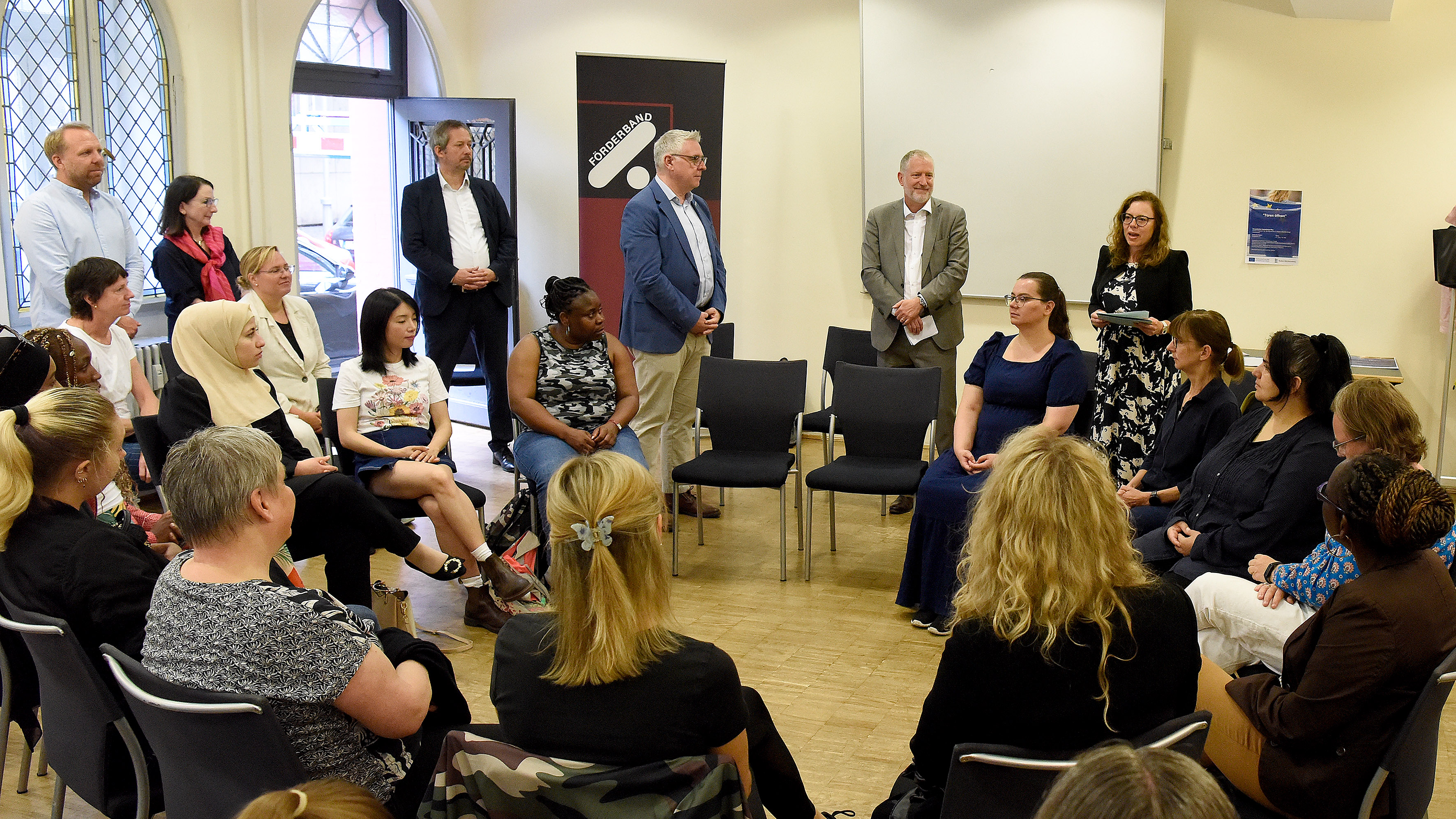 Wie es Alleinerziehenden gelingen kann, trotz Familienverantwortung parallel eine eigene berufliche Perspektive, eine Ausbildung oder Umschulung in Teilzeit zu erreichen, zeigte eindrucksvoll der Besuch der Initiative „Türen öffnen 2025“ von Förderband e.V. (ESF-Förderung: 76.632 €).