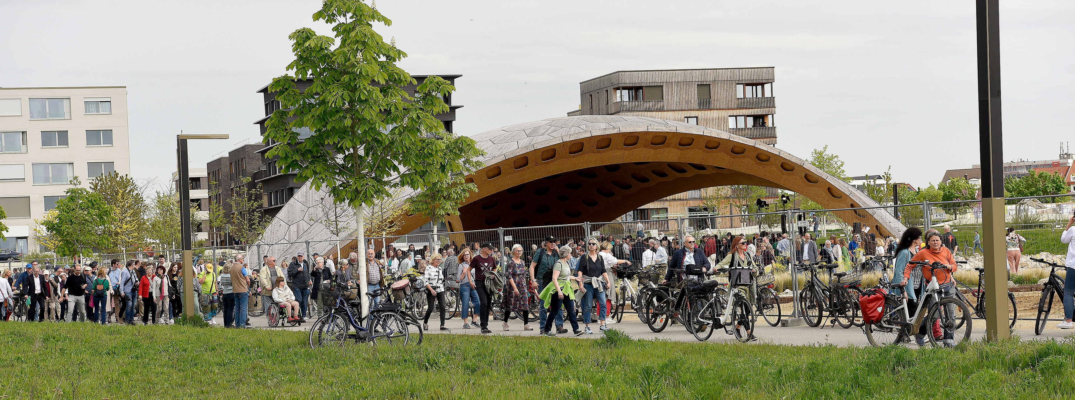 Zugegeben: nicht ganz so viele Menschen wie genau vor einem Jahr zum Auftakt der BUGA 23, aber dennoch sehr viele interessierte Bürgerinnen und Bürger haben sich am heutigen Sonntag auf Spinelli eingefunden, um die Wiedereröffnung des Klimapark-West zu feiern. Bei strahlendem Sonnenschein wurde jetzt der Großteil des ehemaligen BUGA-Geländes auf Spinelli wieder für die Öffentlichkeit zugänglich gemacht.
