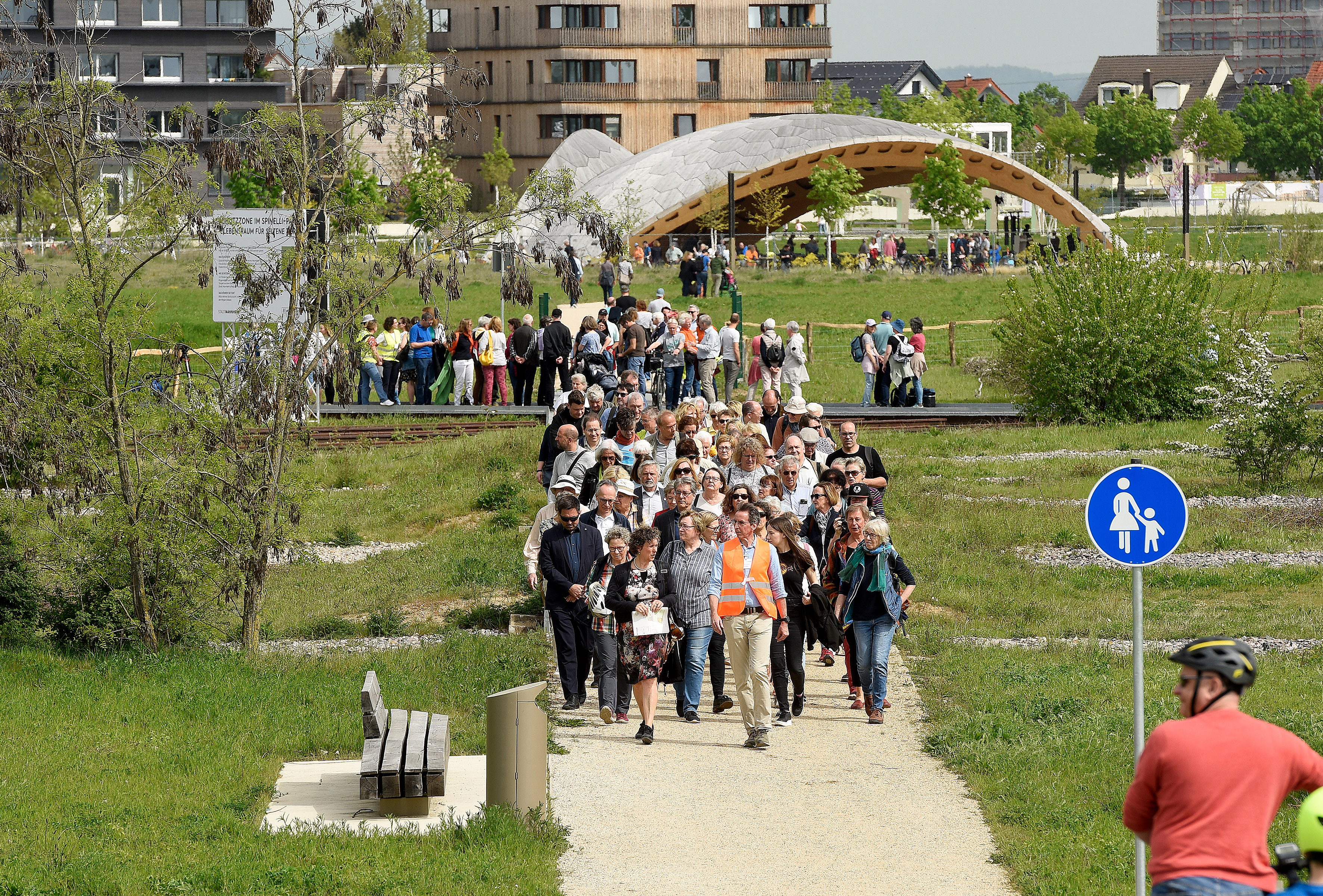 Nach der symbolischen Öffnung des Geländes boten das Naturschutz-Team der Stadt Mannheim, der ehrenamtliche Naturschutzbeauftragte und der NABU Führungen über das Gelände für die vielen Besucherinnen und Besucher an. Dabei gab es viel Interessantes und Wissenswertes zum Thema Natur- und Artenschutz zu erfahren. „Die BUGA 23 war eine große Bereicherung für unsere Stadt. Mit dem Klimapark können wir nun nach Luisenpark und Parkschale ein weiteres Stück BUGA an die Menschen zurückgeben. Und dieses Mal zusätzlich auch an die Natur. Denn Mannheim hat hier viele seltene Arten zu bieten. Sie machen Spinelli besonders. Wir können stolz sein auf Mauereidechsen und Wildbienen, die dort beobachtet werden können. Aber bitte von den Wegen aus. Auch Haubenlerche, Kreuzkröte und Gelbspötter, ein besonderer Vogel, werden hier erwartet. Genießen Sie Ihre Stadt in Einklang mit der Natur“, so Erste Bürgermeisterin Prof. Dr. Diana Pretzell, die selbst eine Führung leitete.