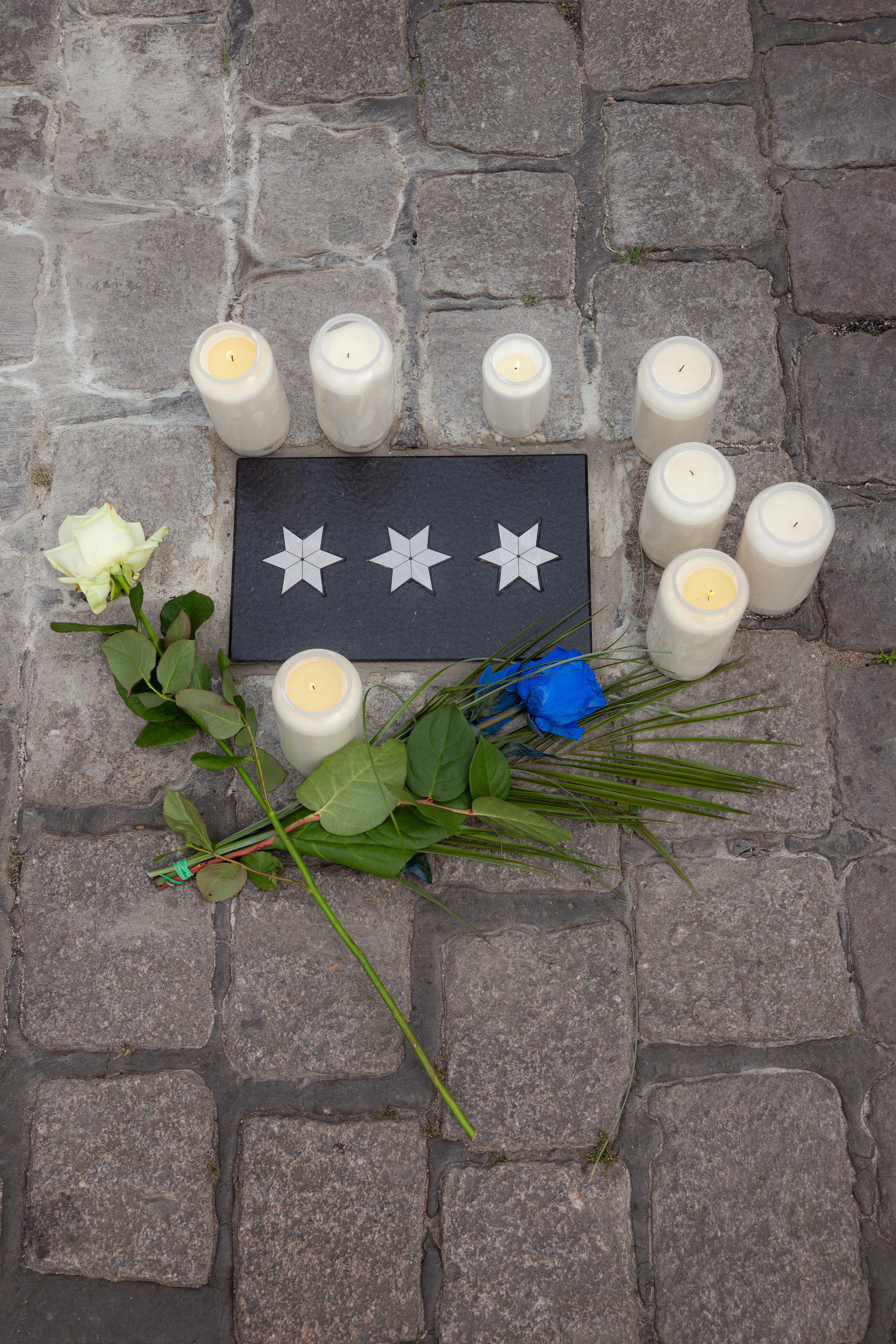 Zum Abschluss wurde eine Gedenkplatte der Öffentlichkeit übergeben, die im Boden des Marktplatzes den Tatort markiert. Die von der Steinmetz- und Steinbildhauer-Innung Mannheim-Heidelberg-Rhein-Neckar-Kreis gestiftete Basaltplatte zeigt drei silberne Sterne, die den Dienstgrad von Polizeihauptkommissar Rouven Laur symbolisieren. Das Große Blechbläserensemble des Landespolizeiorchesters Baden-Württemberg umrahmte die Veranstaltung musikalisch.