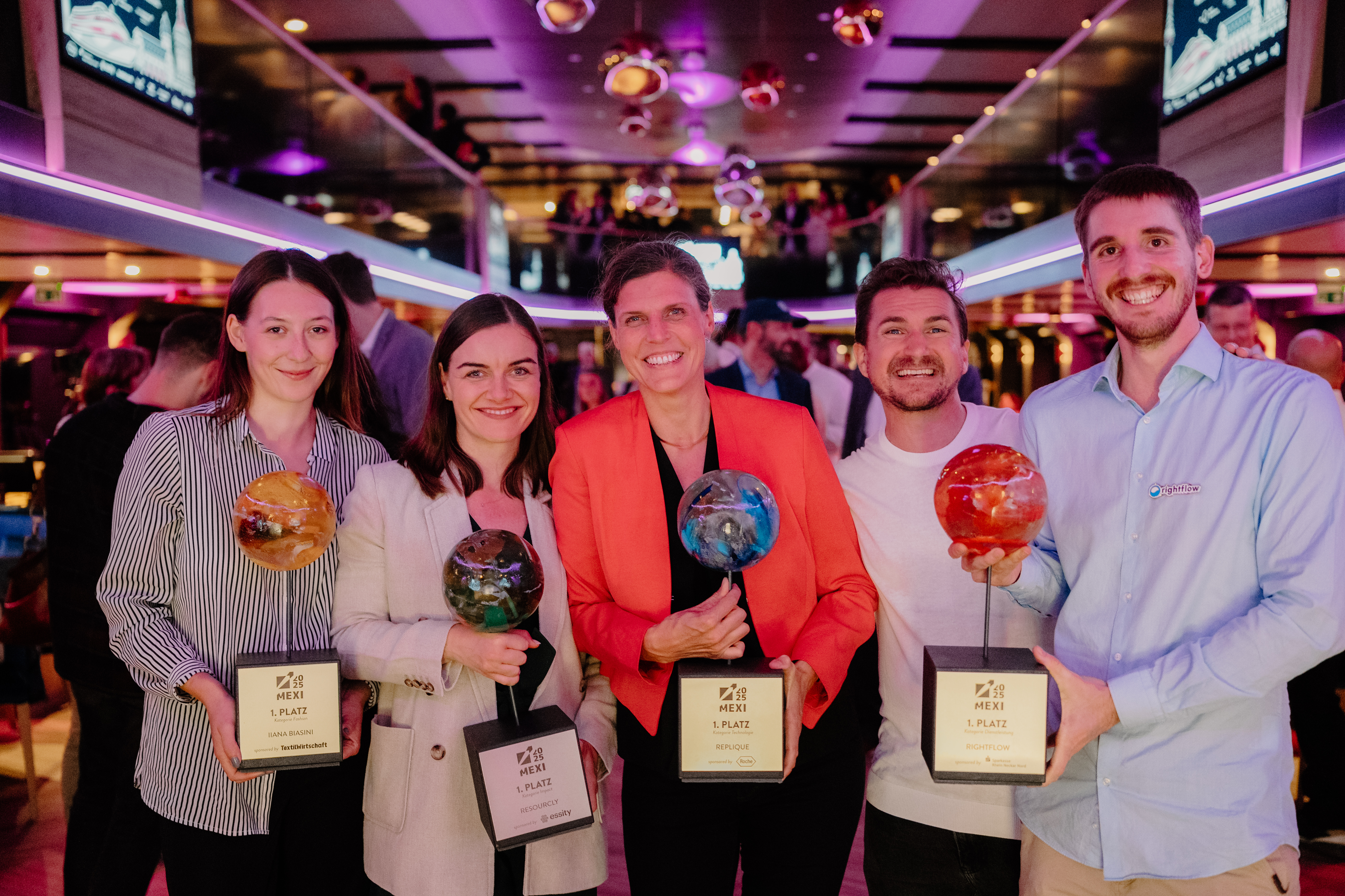 Unter dem Motto „MEXI 2025! Antreten. Abliefern. Abräumen“ würdigte die Wirtschaftsförderung der Stadt Mannheim am 18. September 2025 zukunftsweisende Geschäftsideen junger Mannheimer Start-ups. Zwölf Finalist*innen standen im Mittelpunkt der MEXI-Preisverleihung, die an Bord des Schiffs MS Karlsruhe im Mühlauhafen abgehalten wurde. Organisiert wird der Existenzgründerpreis von der Wirtschaftsförderung gemeinsam mit NEXT MANNHEIM. Aus knapp 60 Bewerbungen wurden die besten drei Start-ups in den vier Kategorien Technologie, Dienstleistungen, Impact und Fashion von einer hochkarätigen Jury ausgewählt.