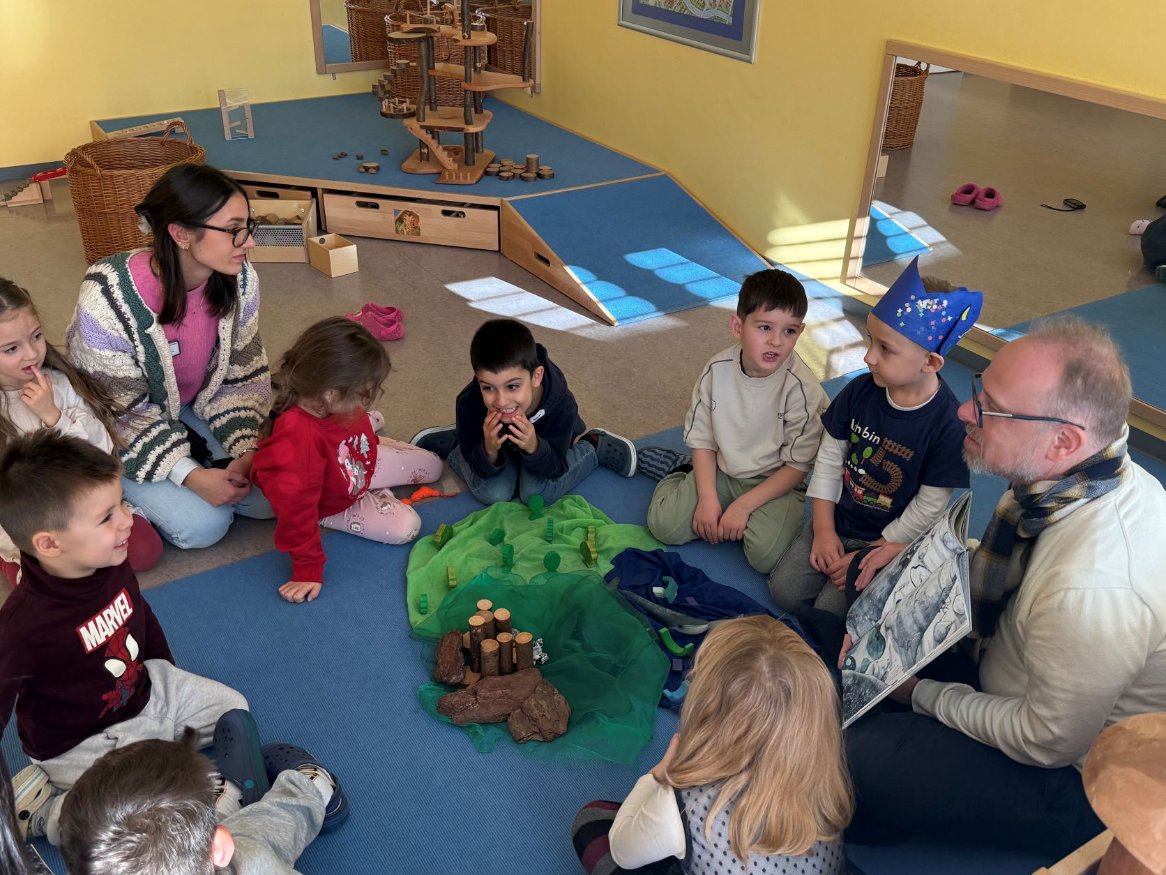 Im Anschluss fanden im Kinderhaus und im offenen Treff weitere Vorleseaktionen statt, gestaltet von pädagogischen Fachkräften und engagierten Eltern. Die Kinder konnten verschiedene Geschichten kennenlernen, vielfältige Sprachen entdecken und in kleinen Gruppen in die Welt des Vorlesens eintauchen.