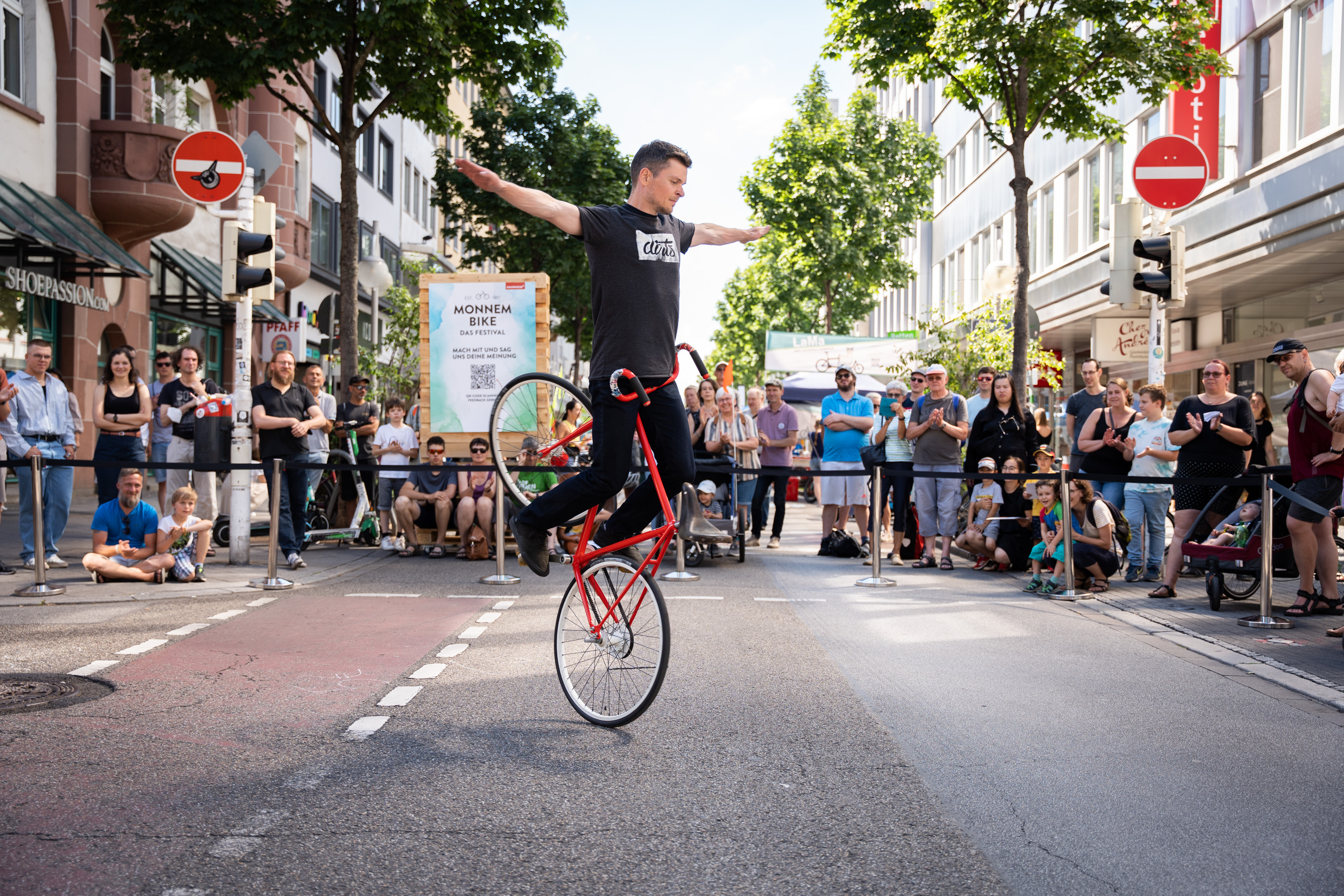 Spektakuläre BMX-Shows, Workshops zum Mitmachen, kostenlose Radchecks, Bühnenprogramm mit Livemusik und viele weitere Attraktionen für Groß und Klein: Am Samstag, 29. Juni 2024 lädt die sechste Auflage von „MONNEM BIKE – Das Festival“ Besucherinnen und Besucher aus Mannheim und der Region ein, die Mannheimer Innenstadt neu zu erleben. Ein Teil der Innenstadt wird zur Spiel- und Spaßfläche. MONNEM BIKE widmet sich dabei einen ganzen Tag lang den Themen nachhaltige Mobilität und Erlebnis- und Aufenthaltsqualität in der Stadt. Im Mittelpunkt steht dabei das Fahrrad, das in Mannheim vor über 200 Jahren erfunden wurde. Mehr als 50 Mitwirkende bieten ein spannendes Programm an verschiedenen Show Points und über 30 Mitmach- und Infoständen.