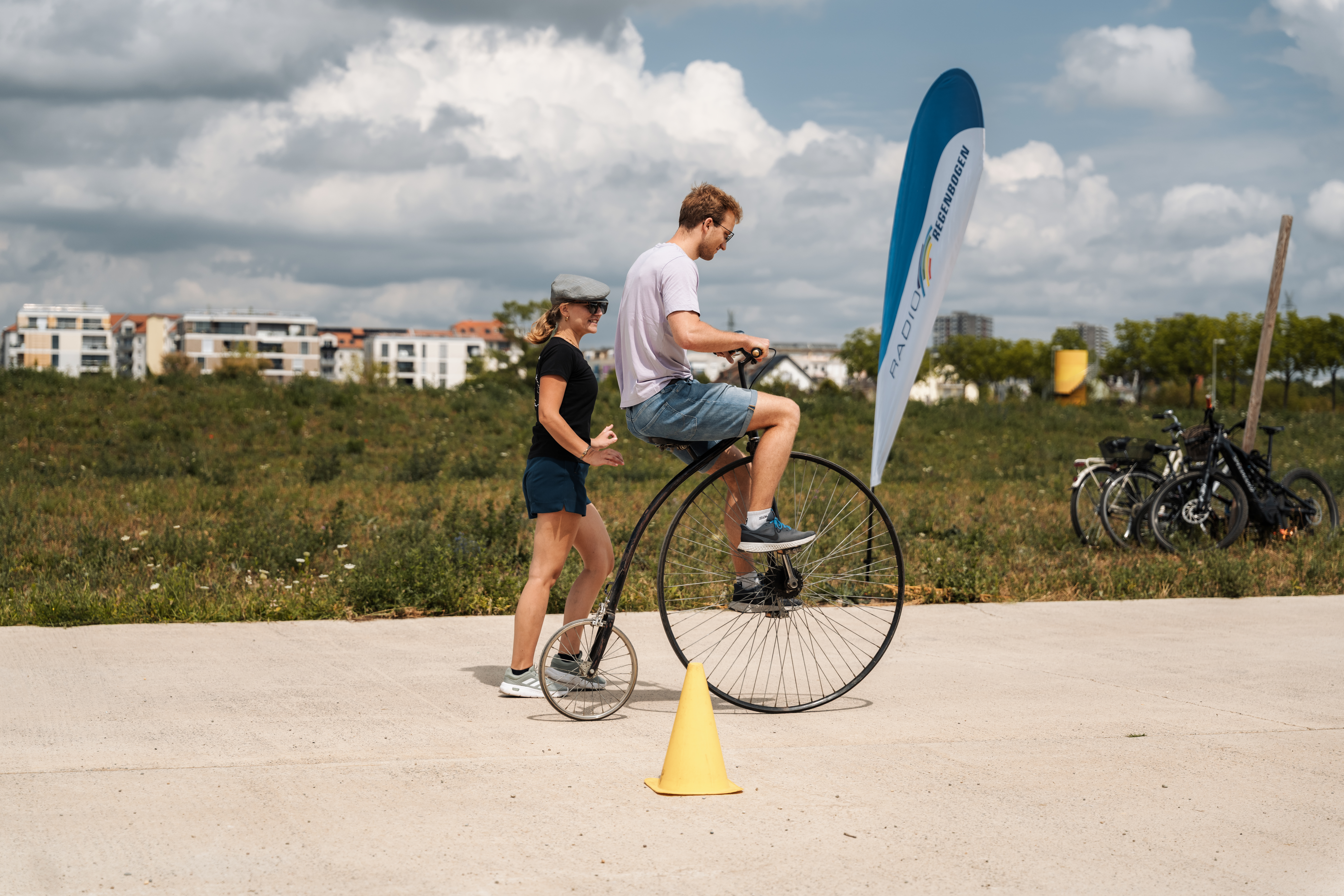 Wer sich hoch hinaus traute, konnte stilecht in die Vergangenheit eintauchen und bei Florians Hochrad Fahrschule einen Hochradführerschein absolvieren. Für die ganz Kleinen (bis 5 Jahre) gab es einen Nostalgiespielplatz mit Fahrzeugen aus verschiedenen Epochen. Beim „Kunstrad“ konnten sich Besucherinnen und Besucher ihr eigenes Kunstwerk erstrampeln und natürlich mit nach Hause nehmen.